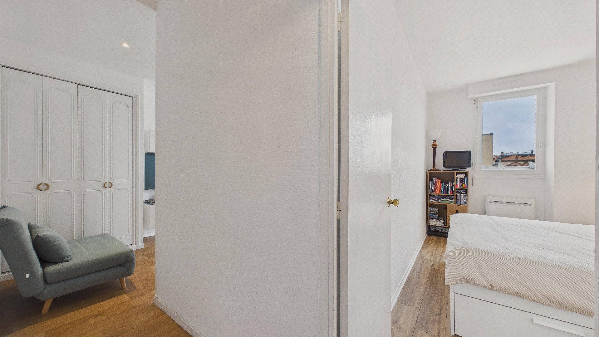 ...Appartement T1 bis d'environ 27 m², comprenant une entrée avec placard, un WC indépendant, une...