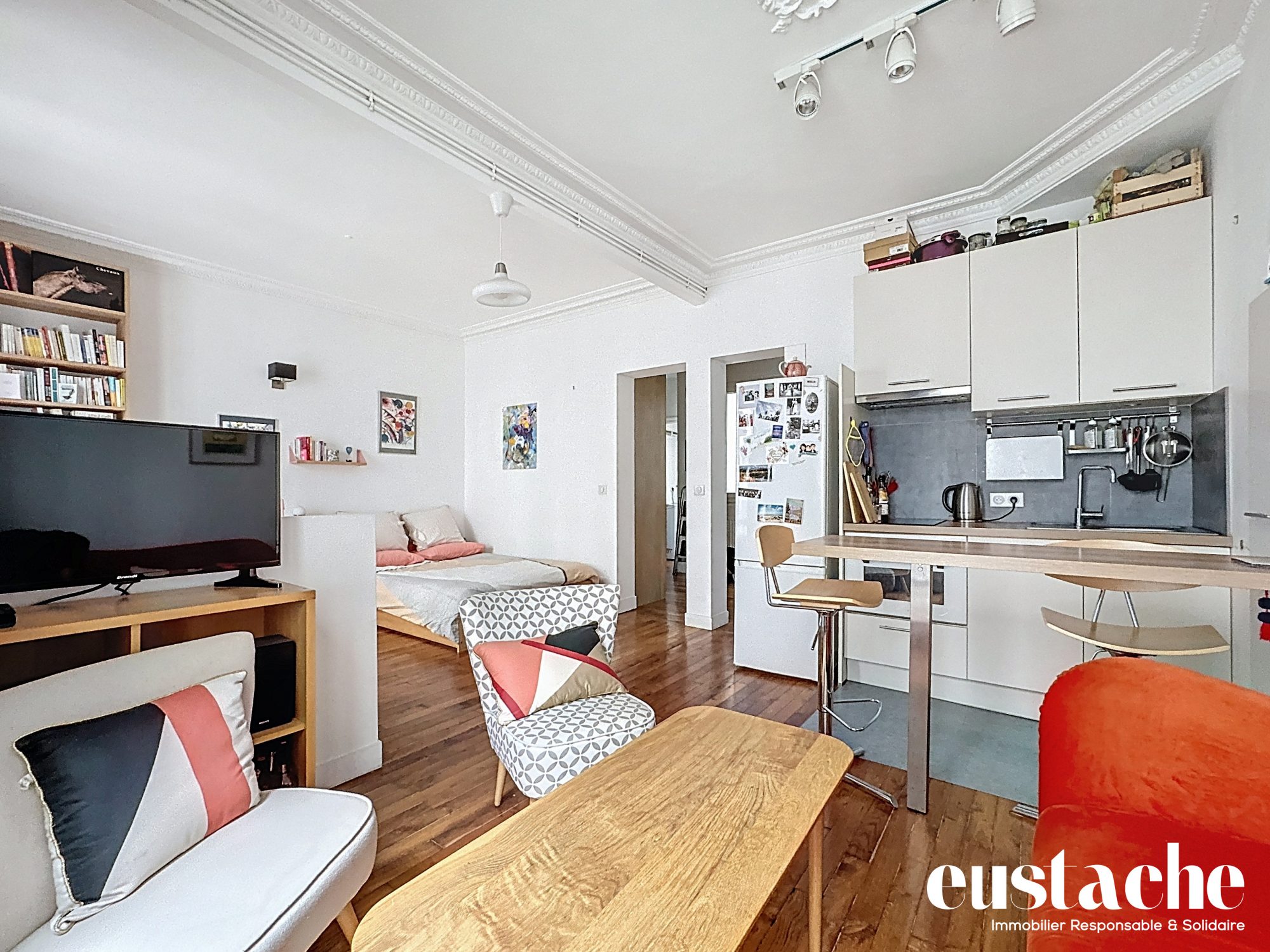 ...Au 1er étage d'un immeuble de 1857 bien entretenu, appartement 2 pièces de charme de 62 m²...