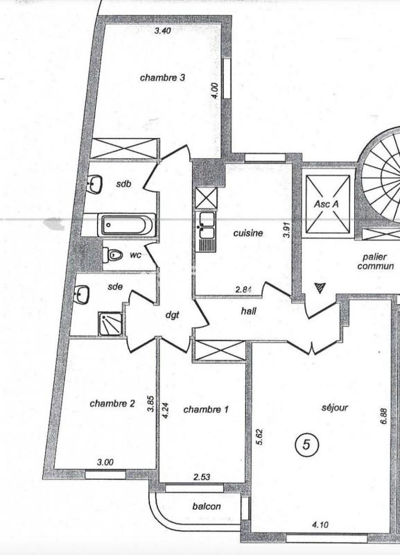 ...Traversant et très lumineux, ce 4 pièces se compose d'un grand séjour de 24 m² avec balcon exposé...