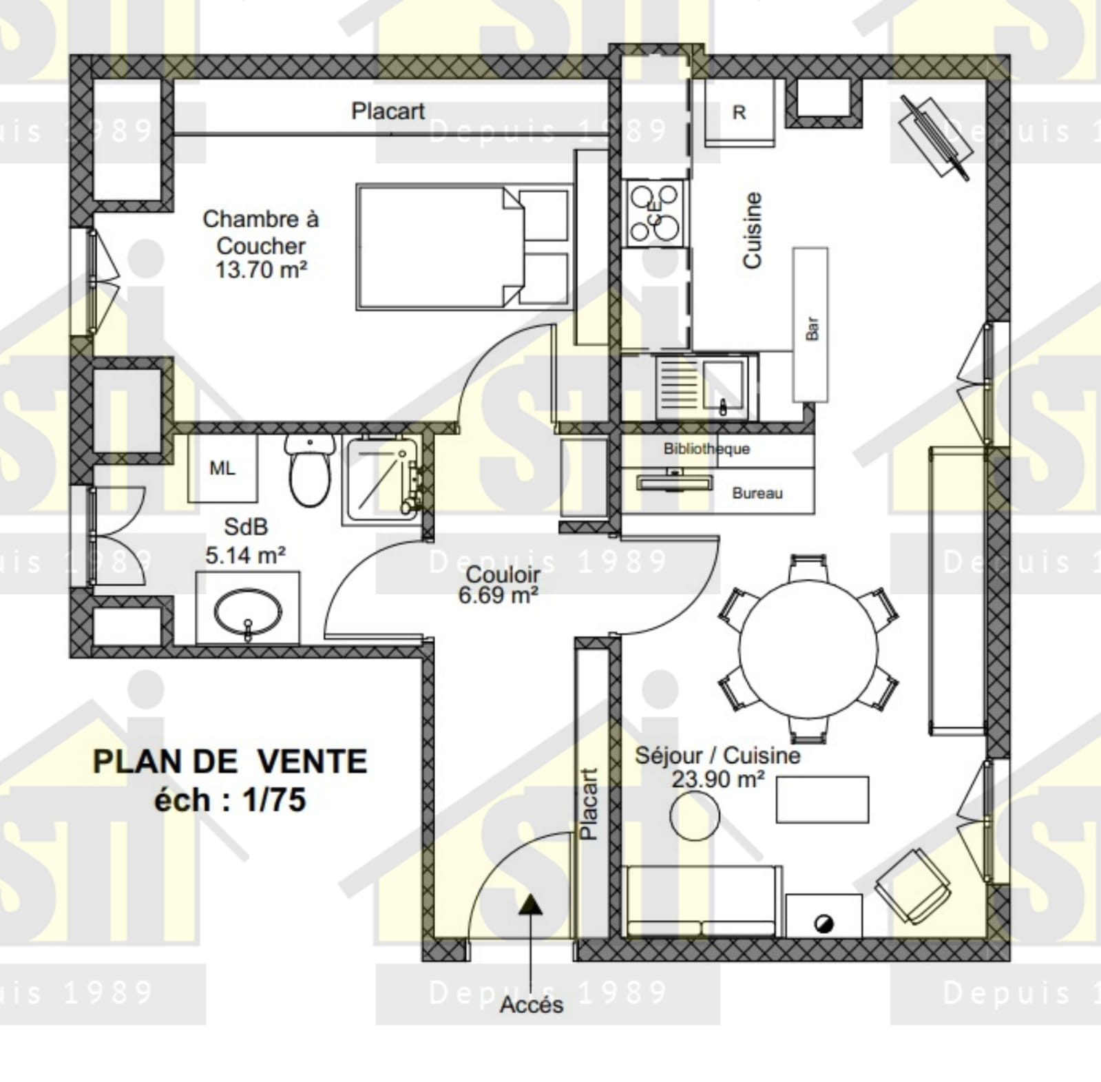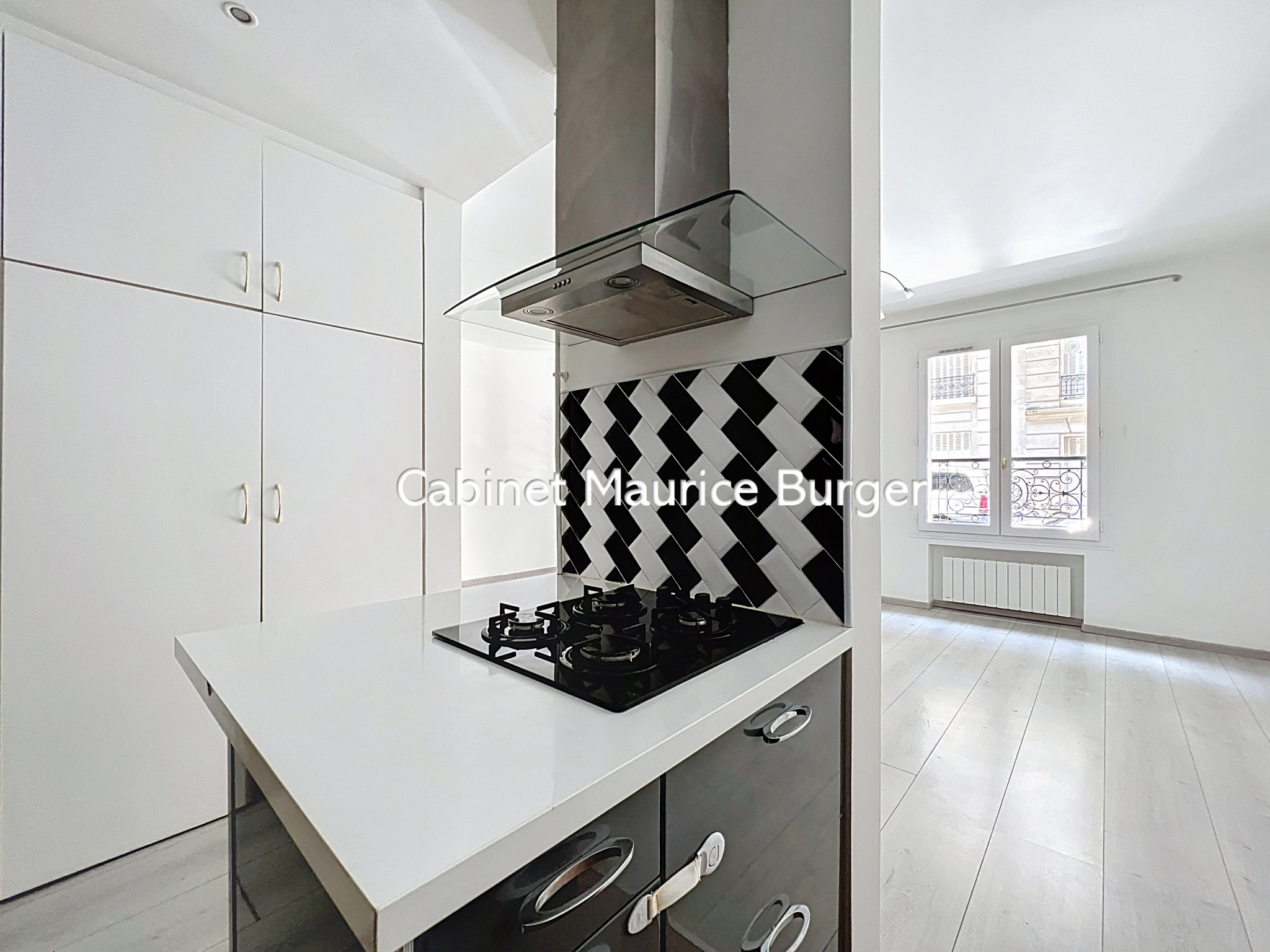...Il est ainsi composé ; entrée, placard, kitchenette, pièce principale, baie vitrée donnant sur...