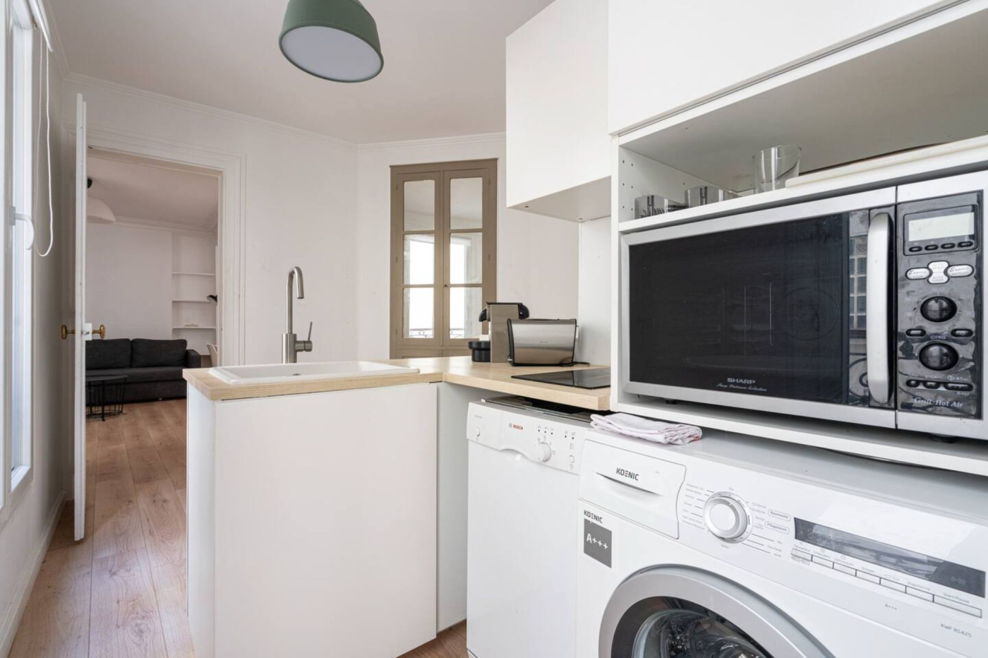 ...Derrière l'effervescence de cette adresse emblématique se dévoile un appartement au calme,...