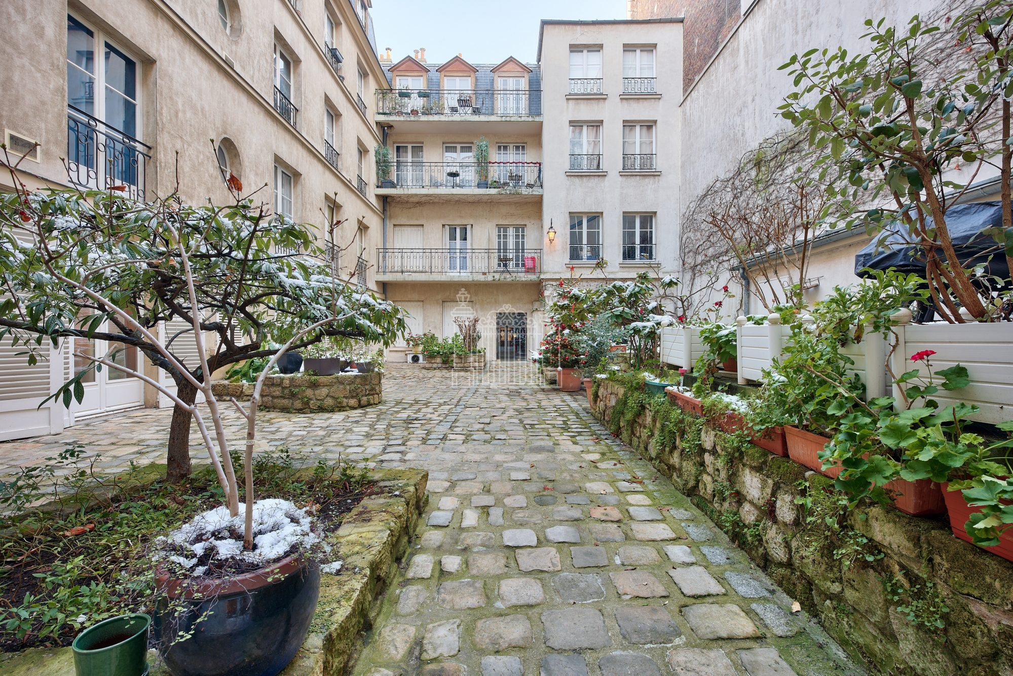 ...Calme absolu sur large cour pavée et arborée...