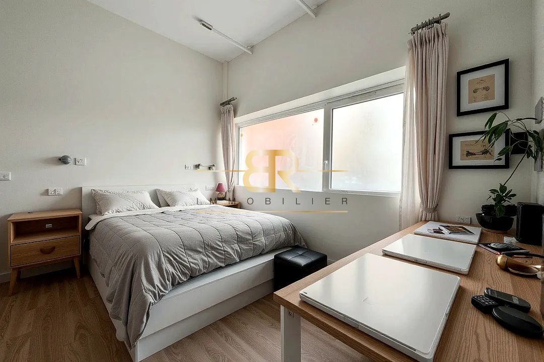...Deux-pièces calme et fonctionnel donnant entièrement sur cour, avec cour privative...