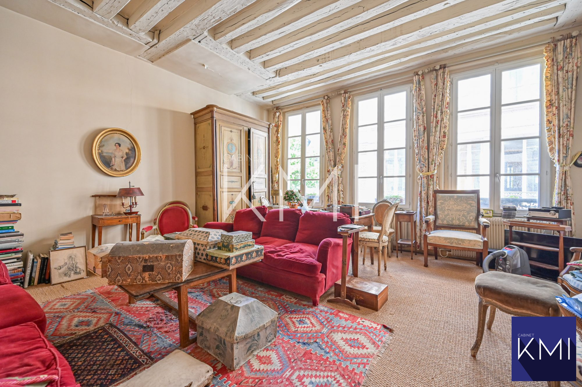 ... d'un bel immeuble ancien, il se?duit par le charme de l'ancien : poutres apparentes, chemine?e fonc...