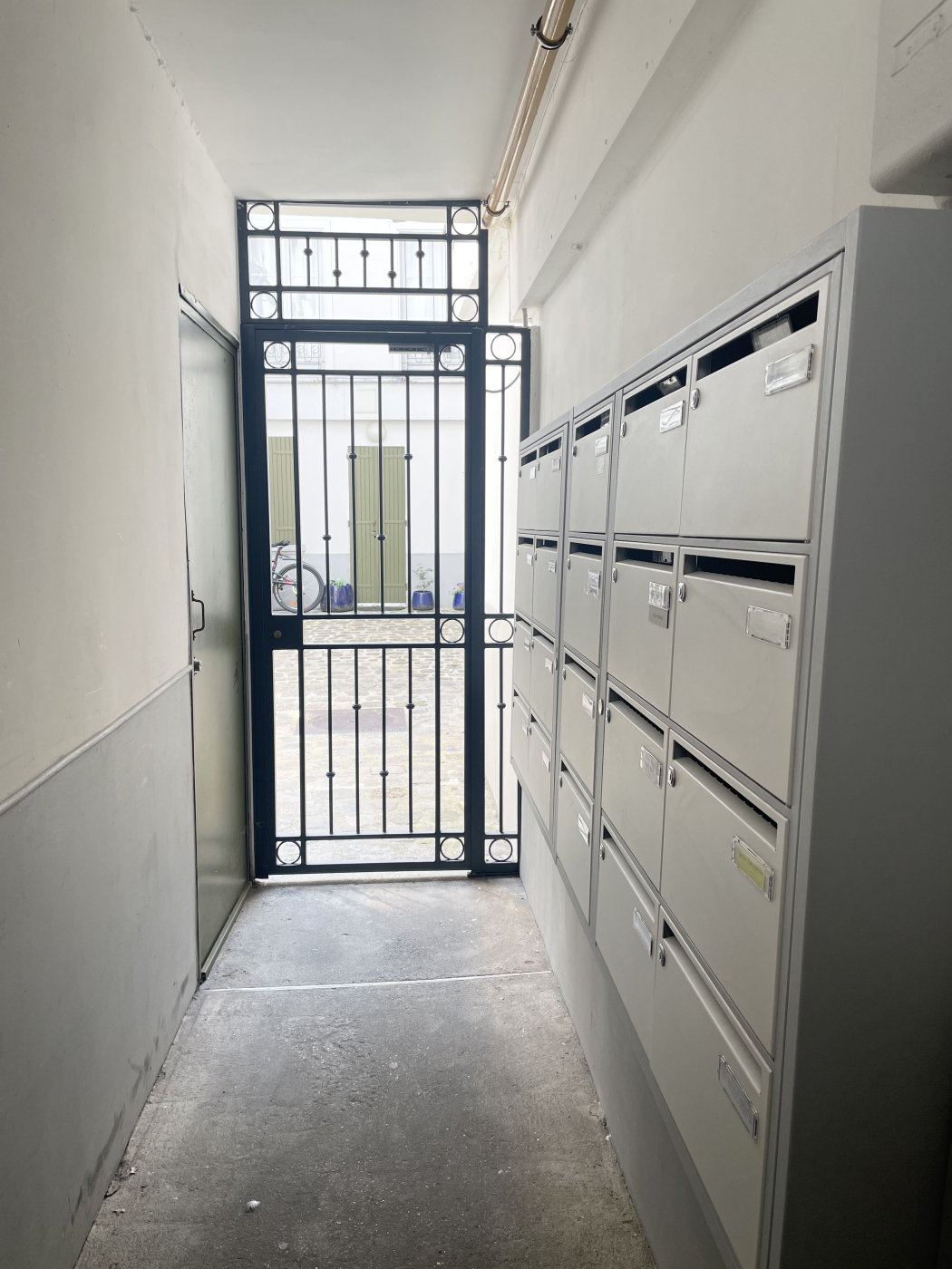 ... un immeuble semi-récent, en retrait de la rue et donnant sur cour.
