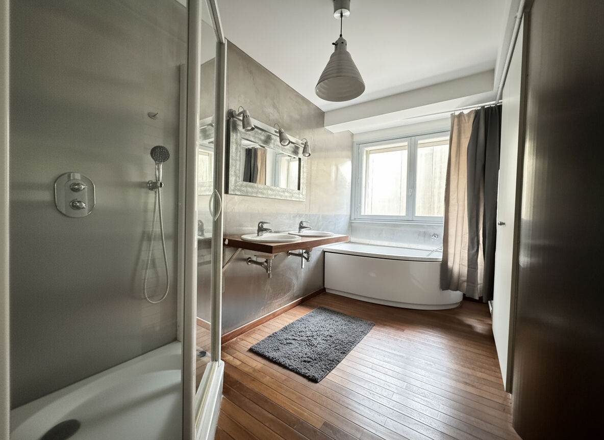 ...Fenêtres double vitrage PVCSalle d'eau rénovée...