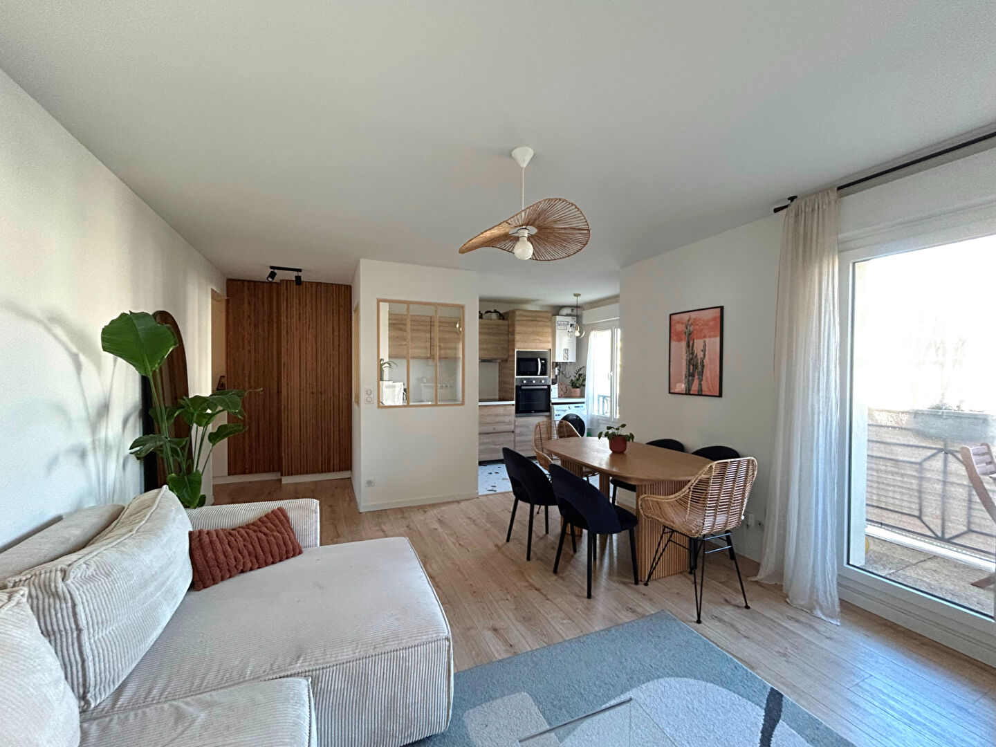 ... de 3 pièces rénové avec goût comprenant entrée, cuisine équipée ouverte sur séjour, 2 chambres, sal...
