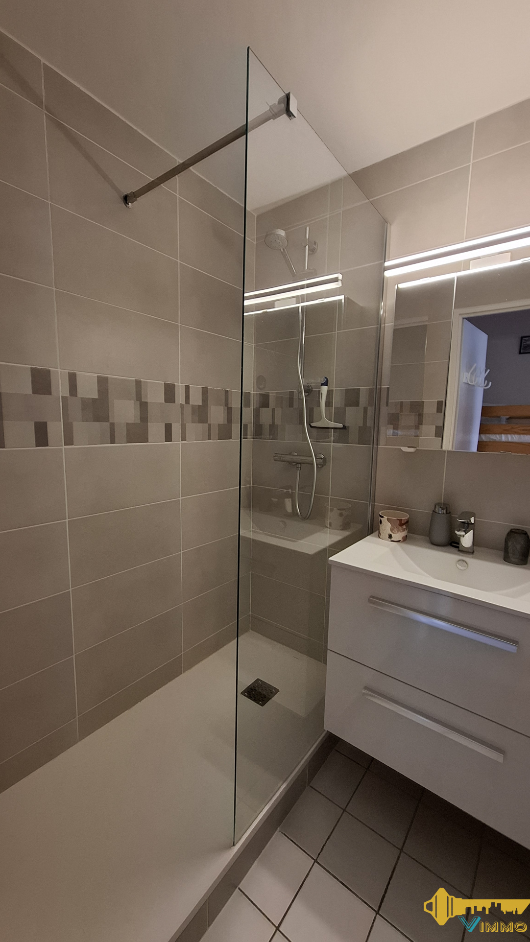 ...Appartement comprenant: une entrée avec placard, un salon avec kitchenette aménagée et...