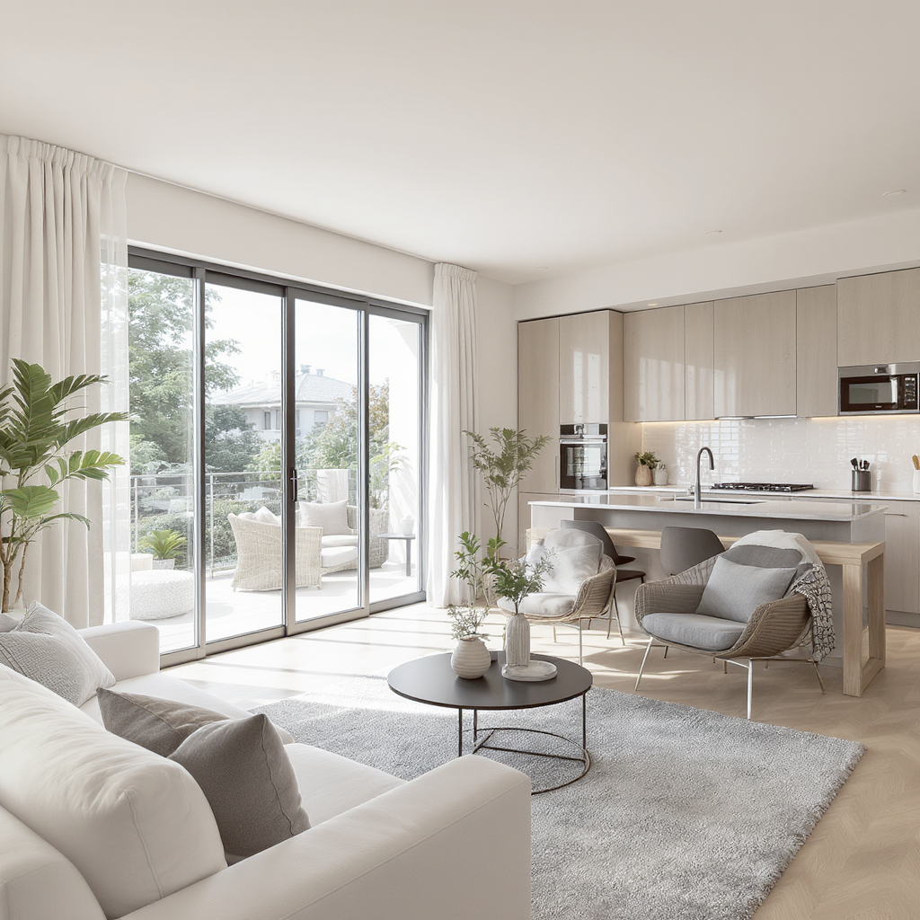...Les volumes généreux du séjour, de la salle à manger et de la cuisine s'ouvrent sur une terrasse...
