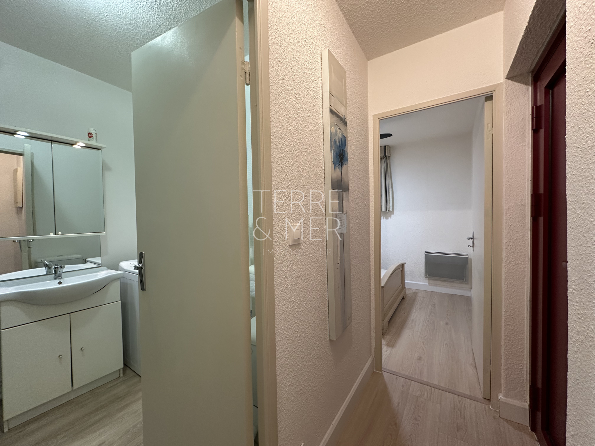 ... en longueur, une cuisine équipée, une chambre avec placard et accès au balcon, une salle d'eau avec...