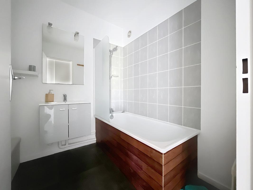 ...Ce logement de type T2, accessible par ascenseur, se compose d'une élégante pièce de vie ouvrant...