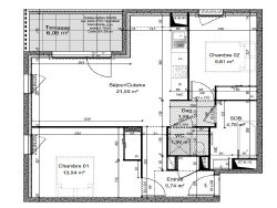 ... type 4 de 66 m², lumineux et traversant. L'appartement est composé d'une entrée, d'un séjour, d'u...