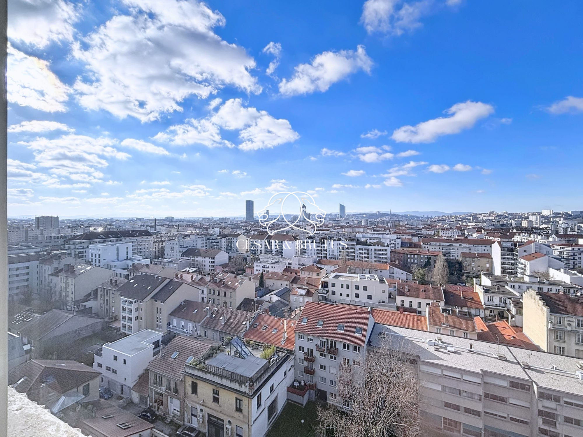 La vue panoramique depuis le balcon de 13 m² environ offre une belle perspective sur ...