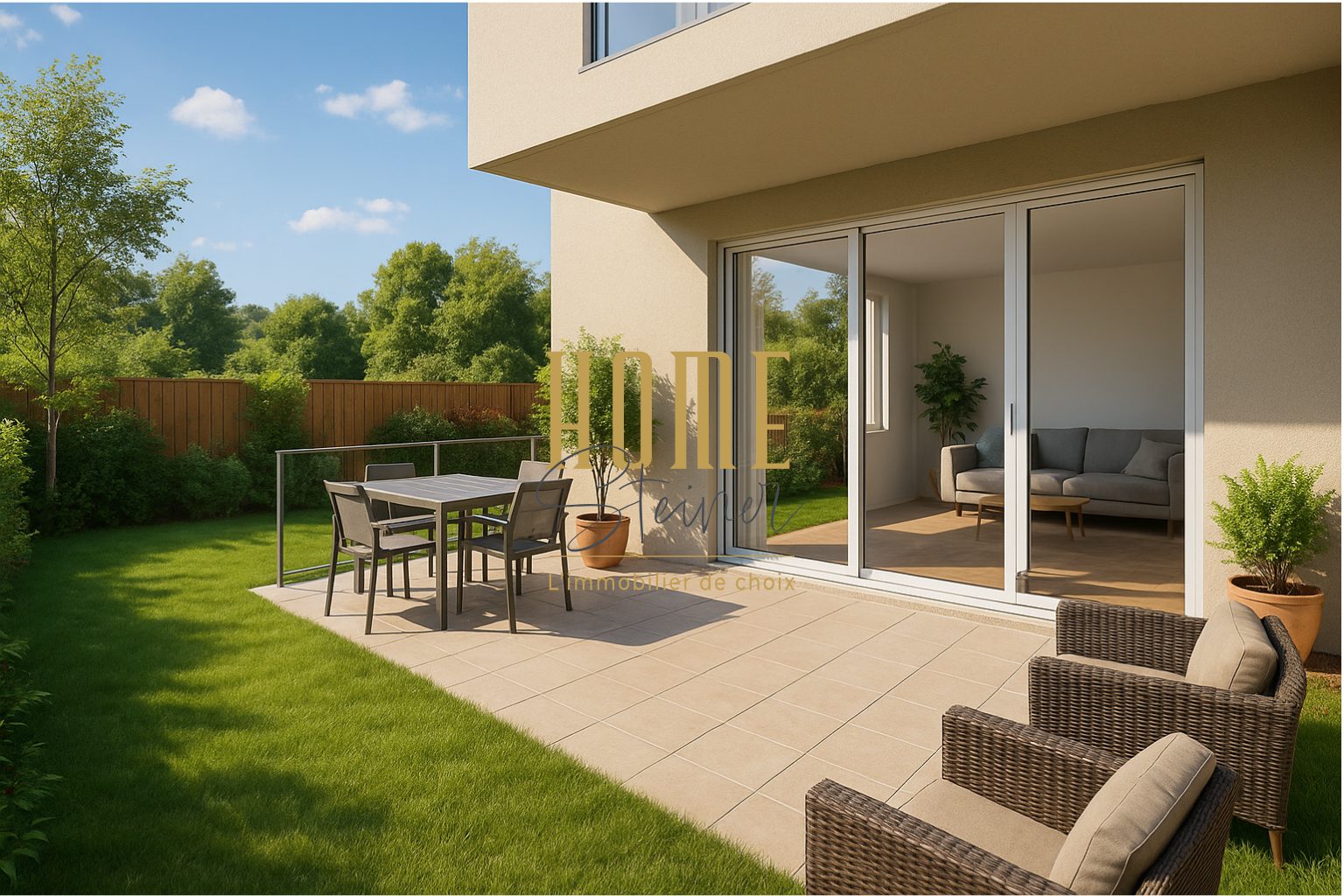 ...Vous profiterez pleinement de ses deux terrasses de 16m² plein sud ainsi que du jardin engazonné...