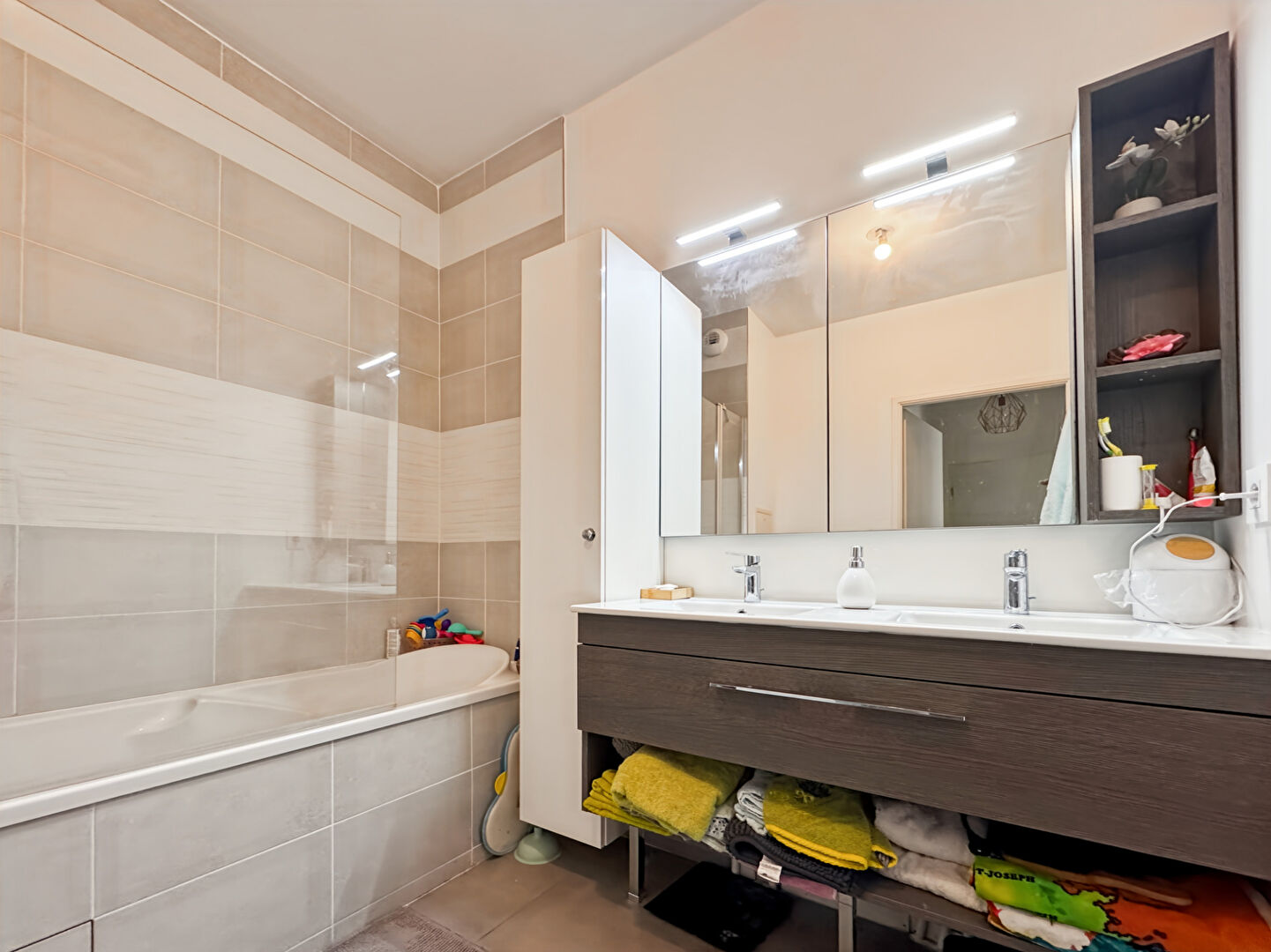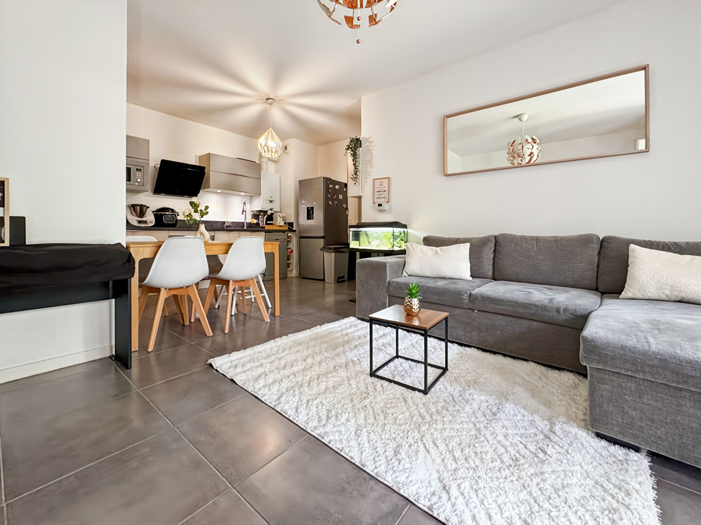 ...Le séjour spacieux et lumineux de 34m² , avec cuisine ouverte, s'étend sur deux terrasses...