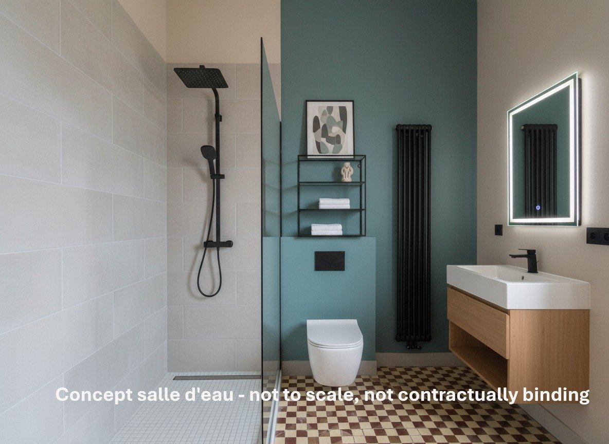 ...Appartement en rez-de-chaussée de type studio bis de 38 m² dans un immeuble de trois appartements...
