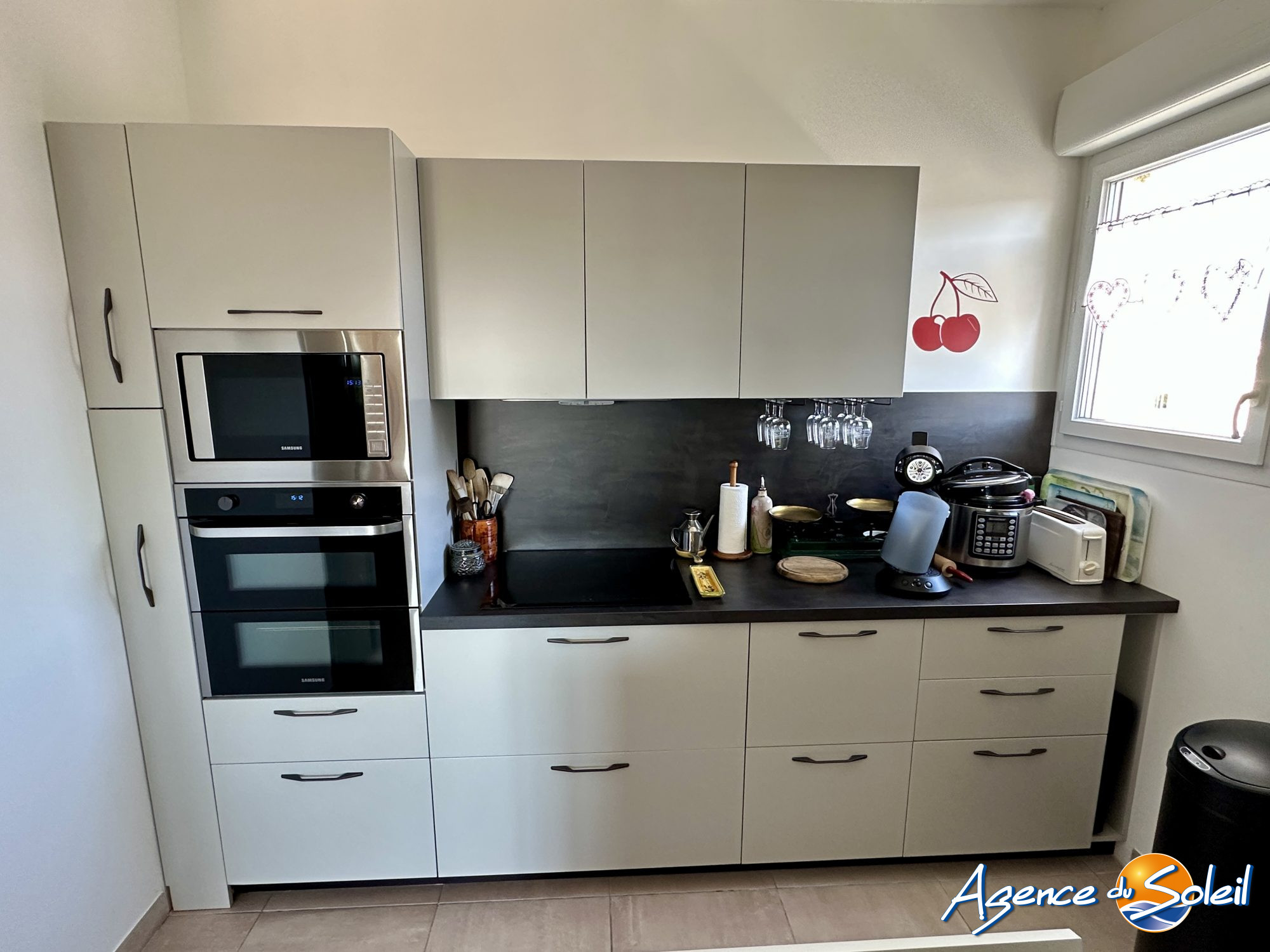 ... cuisine ouverte récente entièrement équipée, donnant sur une lumineuse loggia.