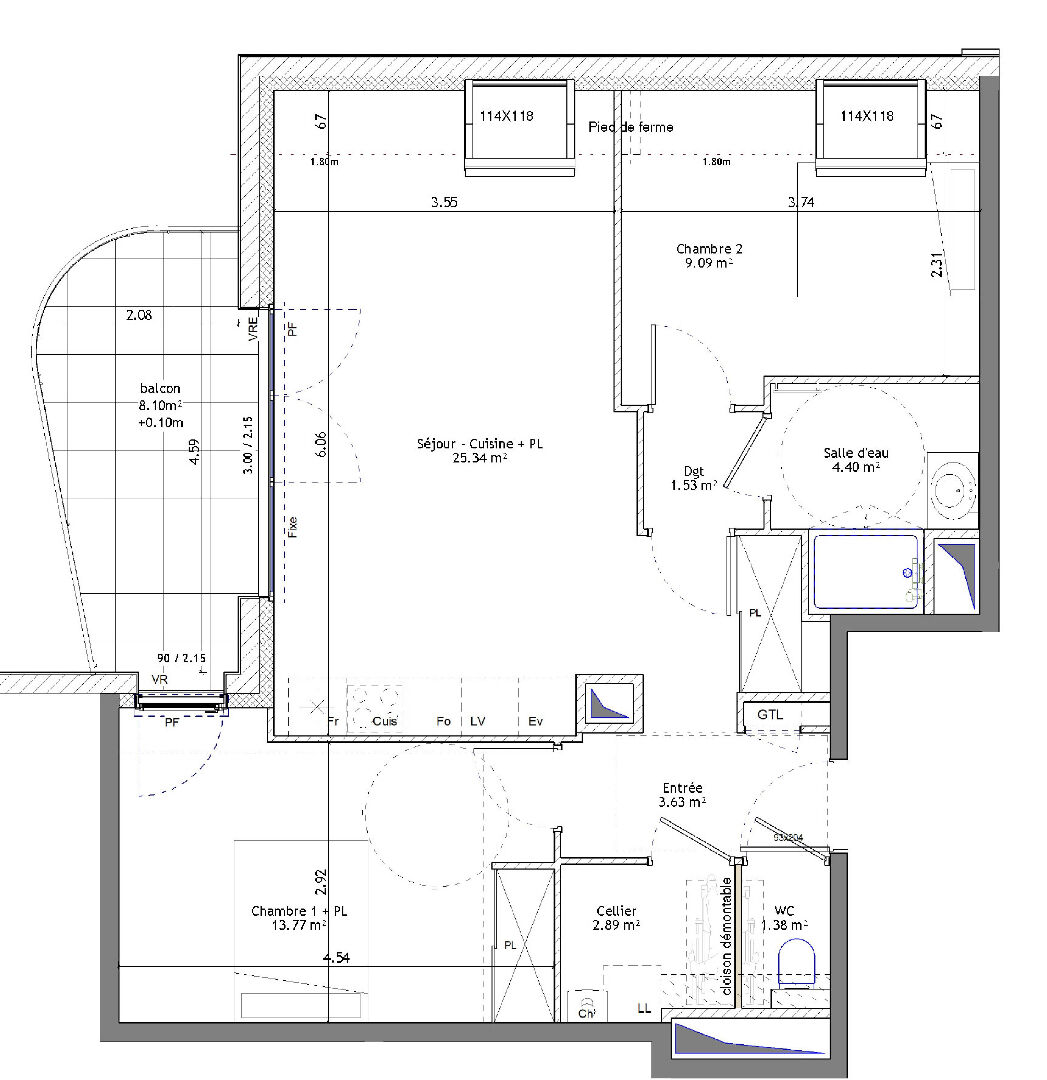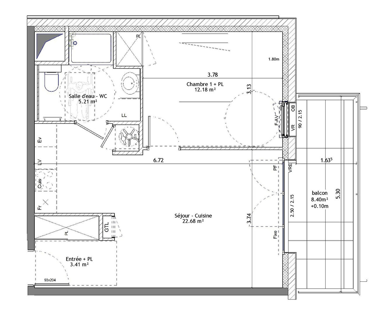 ...03m² Sud - 2ème étage - balcon 8...