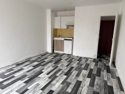 ... une entrée avec placard, un séjour avec une cuisine ouverte, une chambre, une salle d'eau, un WC.
