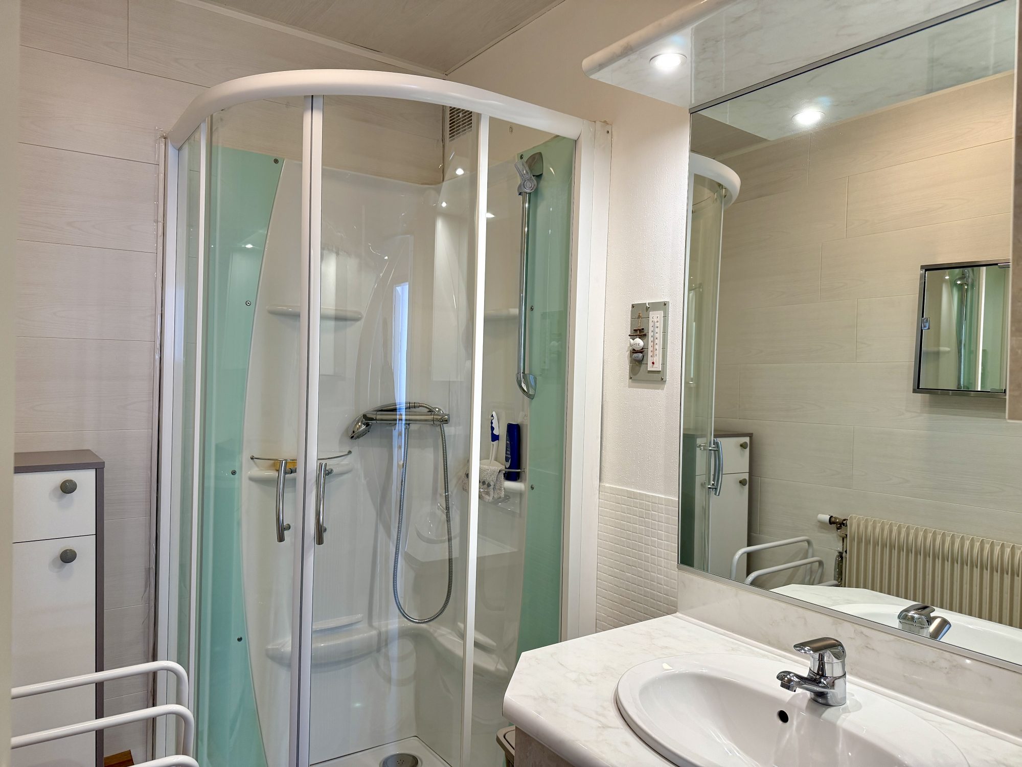...Il se compose d'une entrée avec placard, un séjour avec lit escamotable et coin cuisine équipé,...