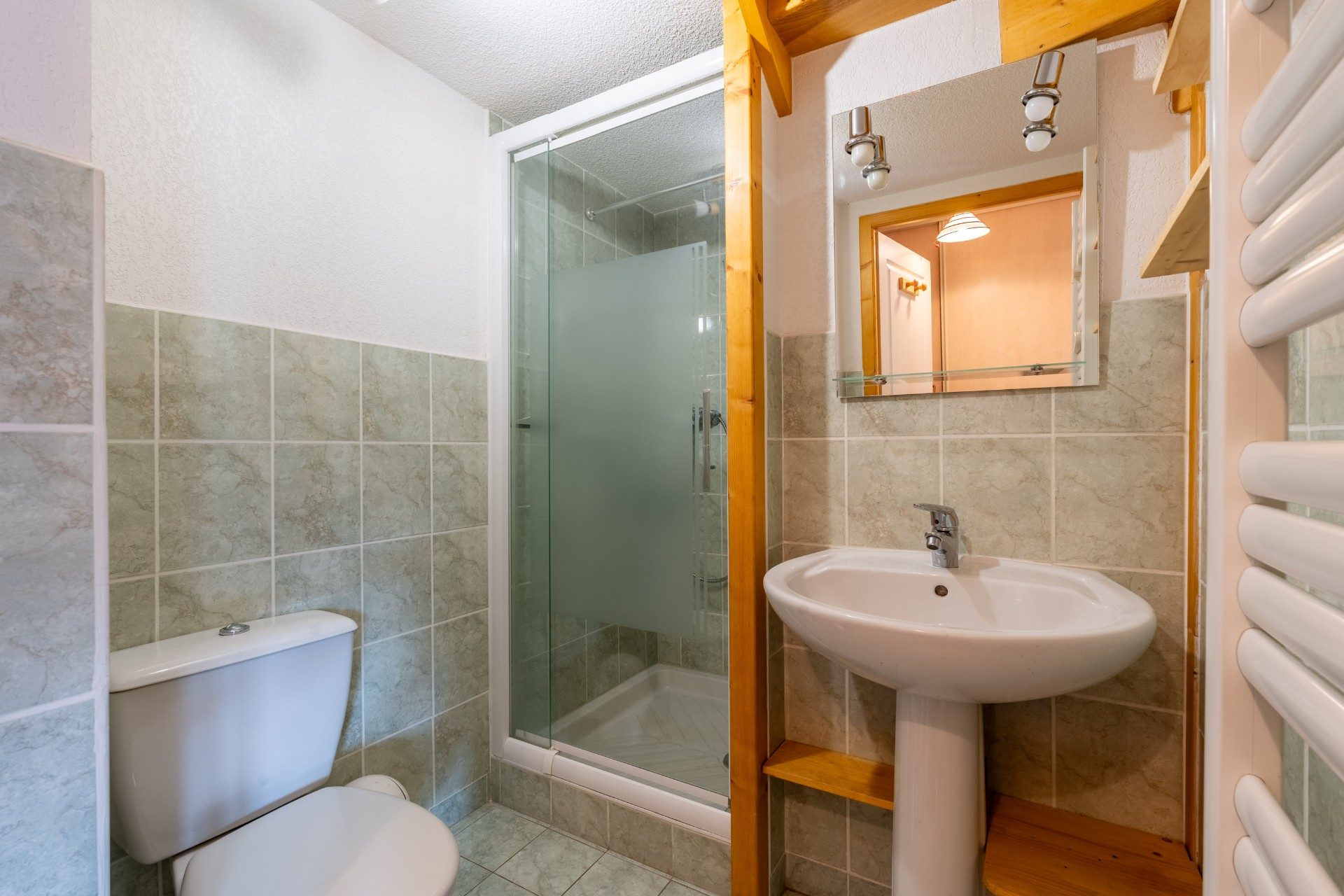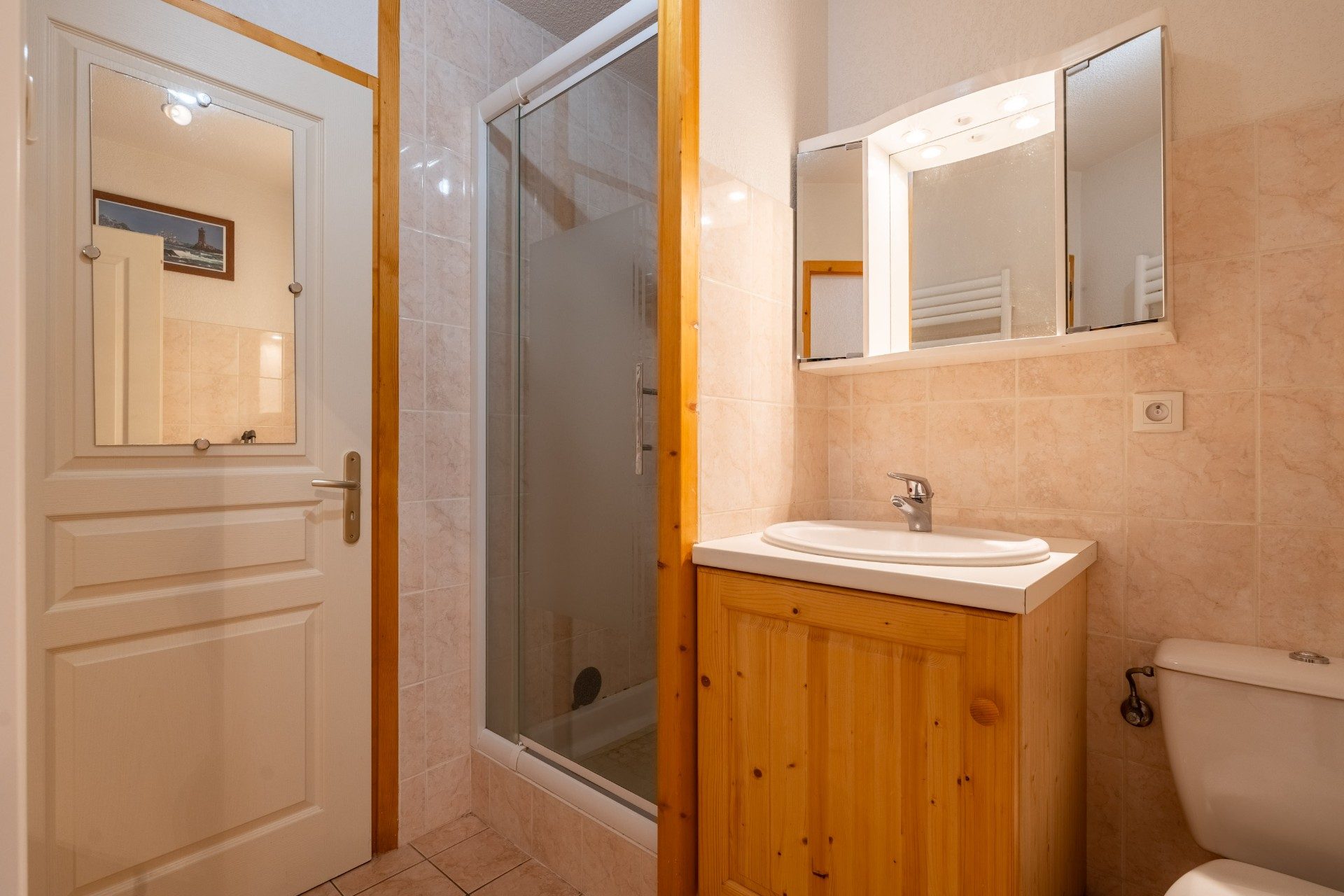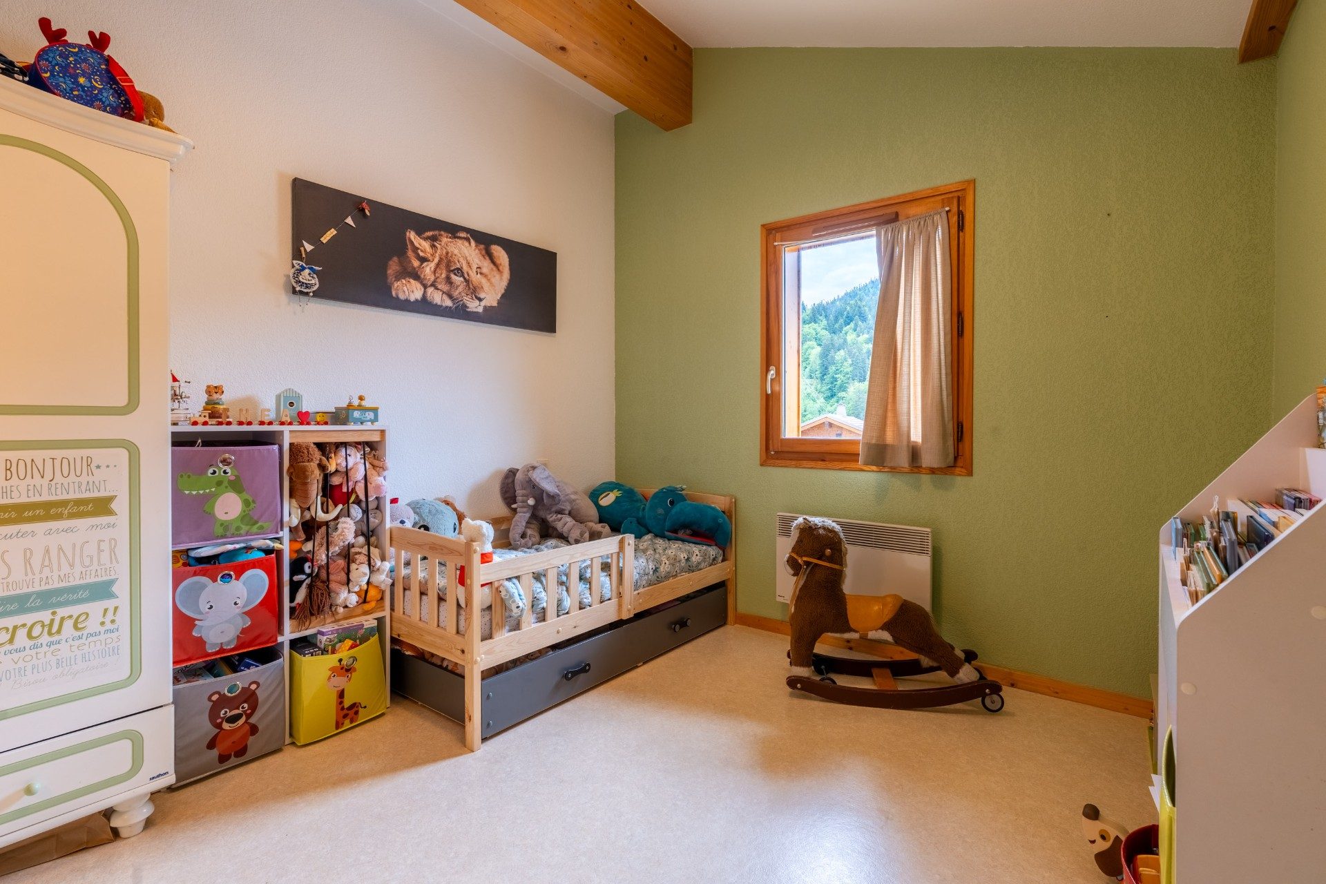 ...Un coin nuit disposant de lits superposés ainsi que de placards intégrés, ainsi qu'une salle...