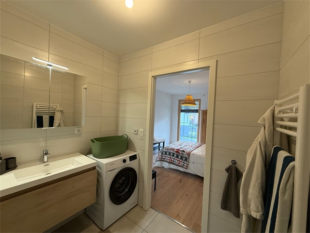 ... d'une salle d'eau moderne avec douche à l'italienne et espace buanderie.