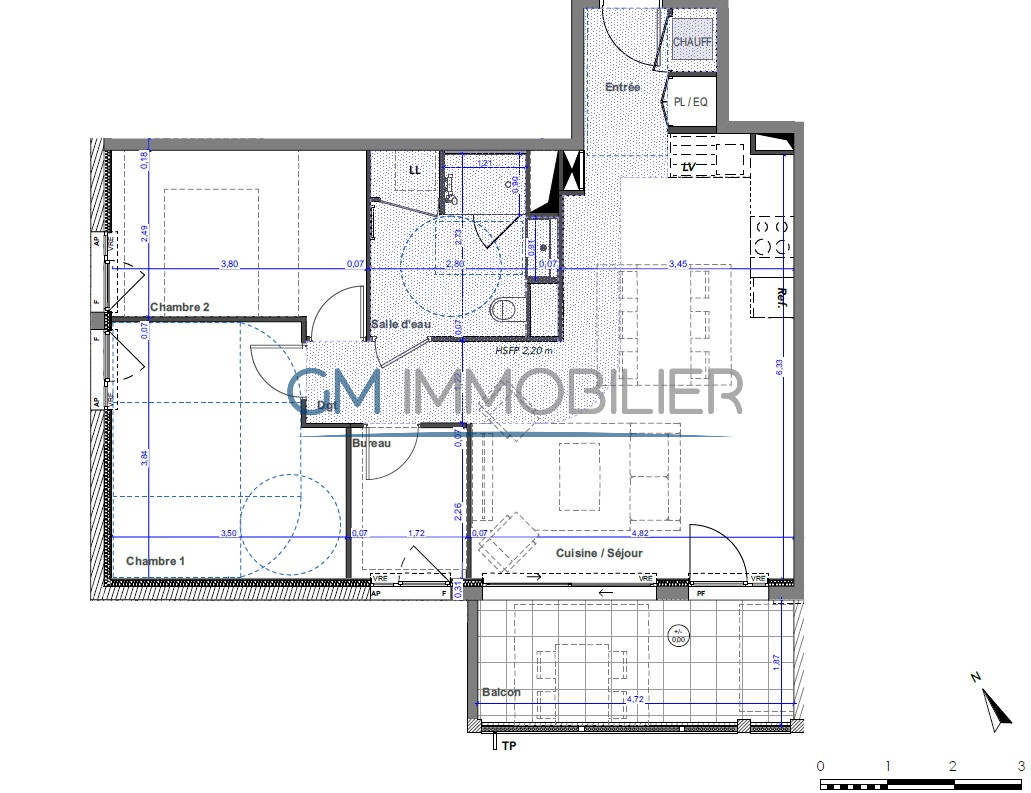 ...ENTREE - SEJOUR CUISINE US - SALLE D'EAU COMPLETE- CHAMBRE ET BALCON-TERRASSE EXPOSITION EST-...