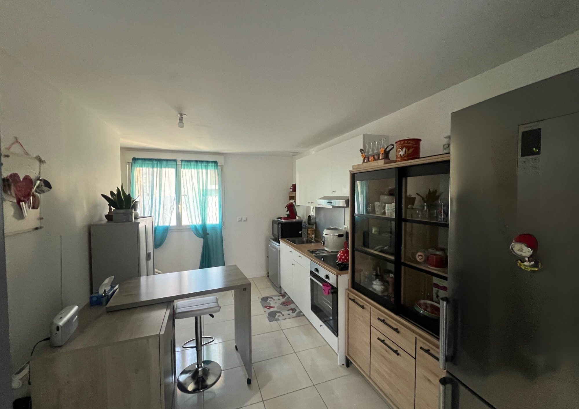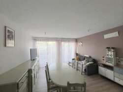 ...En rez-de-jardin, l'appartement se compose d'une entrée avec placard de rangement, d'une cuisine...
