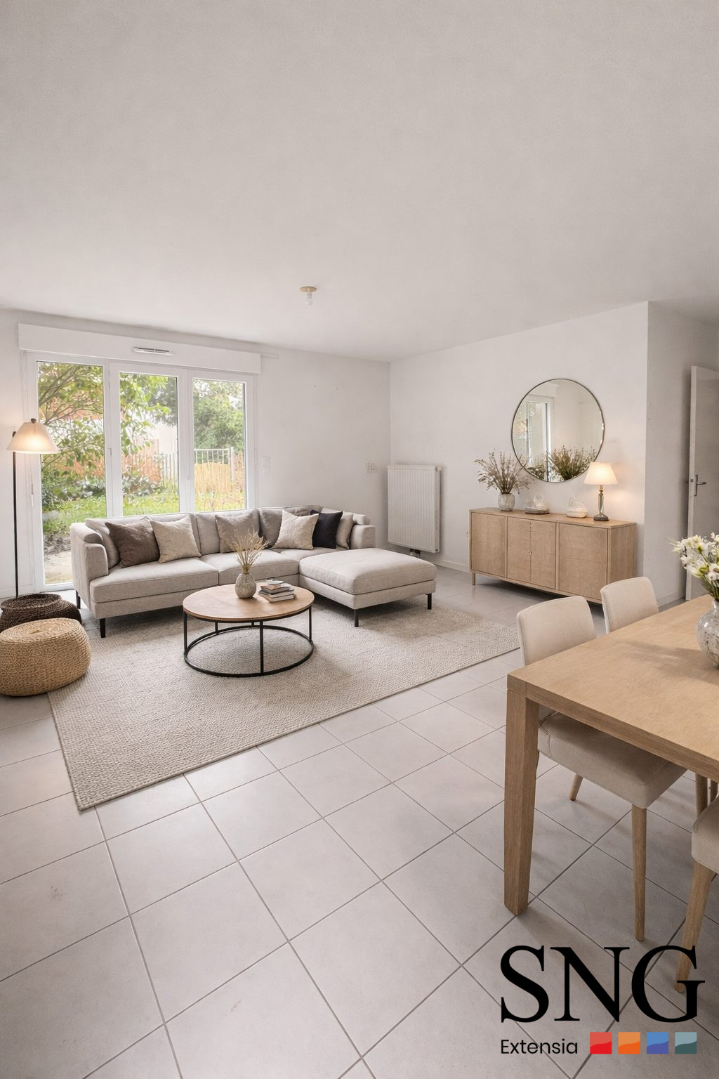 ...L'entrée dessert une grande pièce de vie de 34m2 avec cuisine ouverte, formant un espace central...