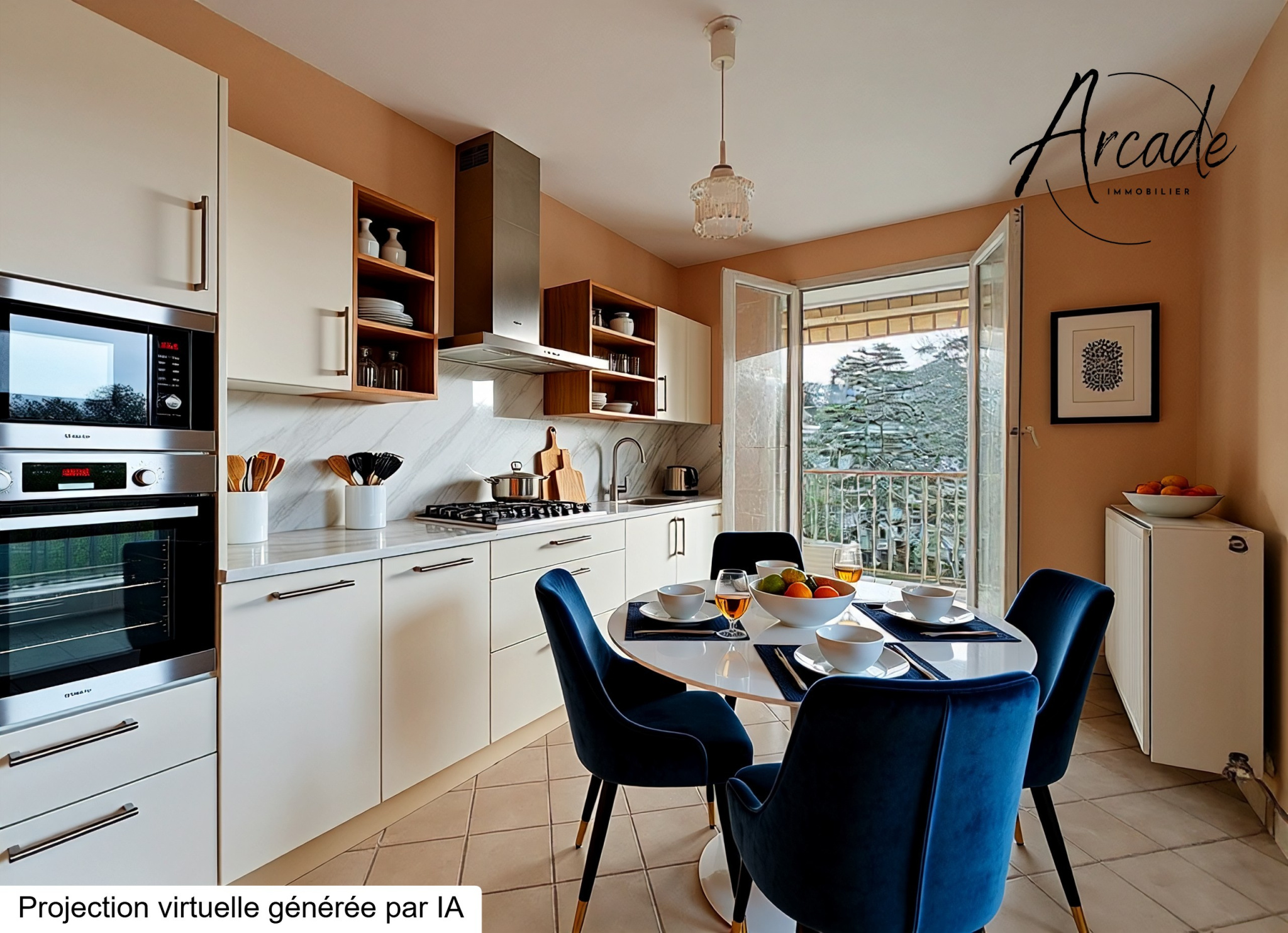 ...Une galerie d'entrée ouvre sur une vaste cuisine aménagée et équipée puis sur un superbe...