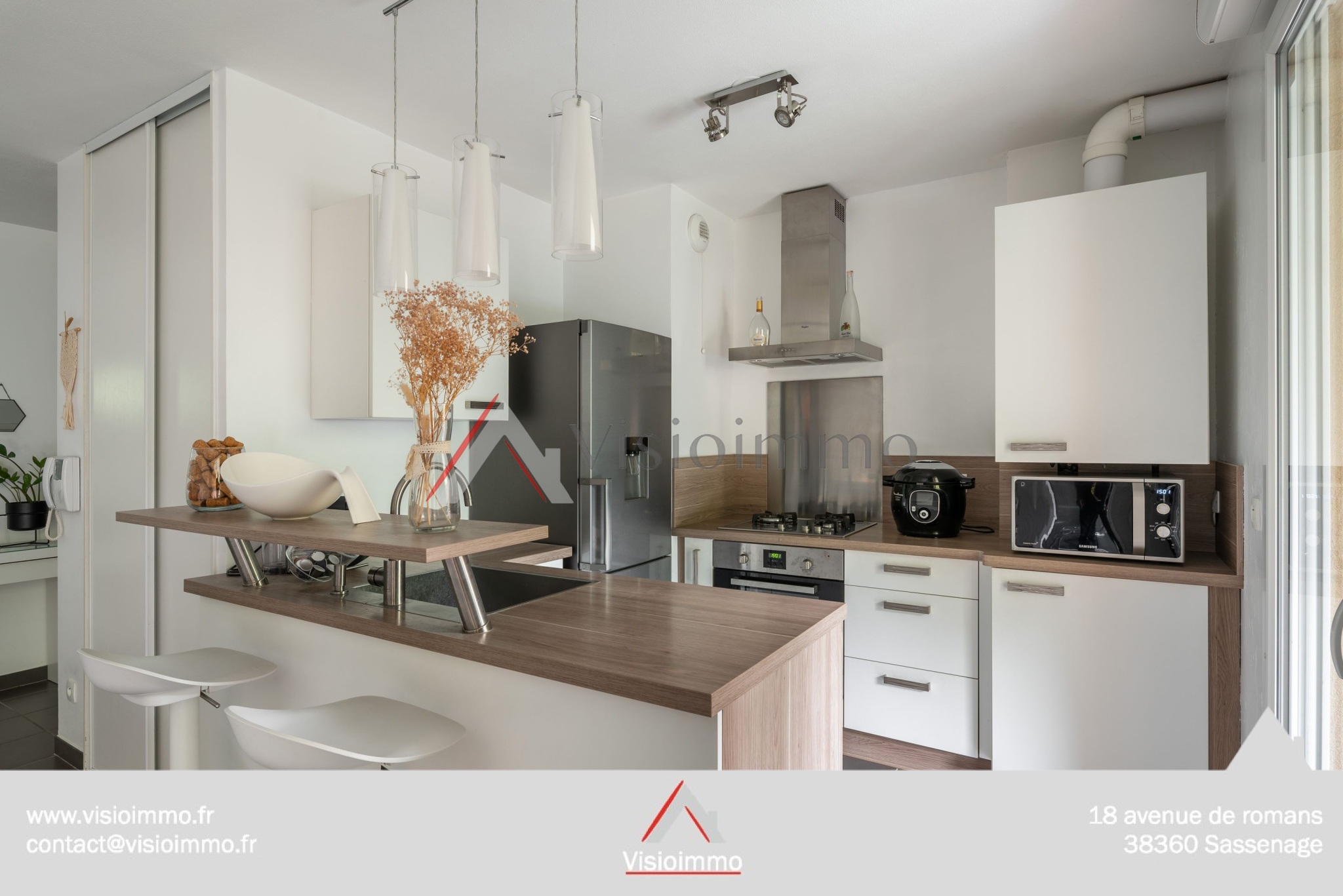 ... bel espace de vie lumineux, exposé plein sud, comprenant une cuisine équipée ouverte sur le séjour ...