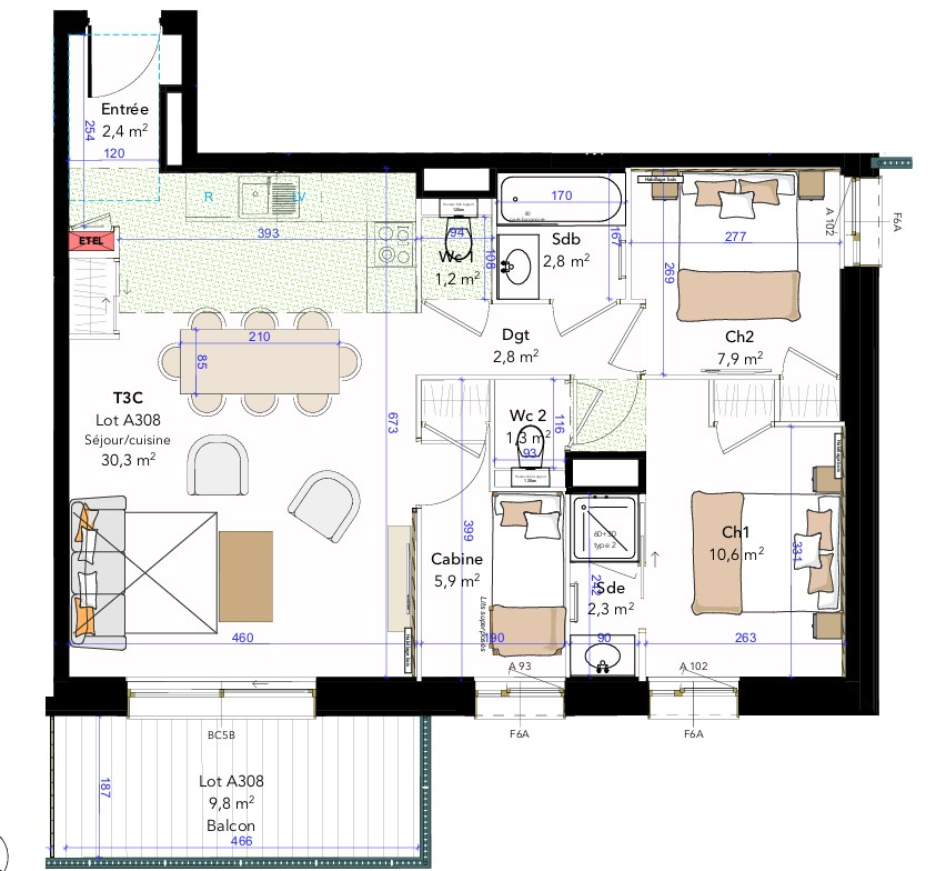 ...Ce magnifique T3 de 69,12m² exposé SUD saura vous séduire par sa situation, son séjour avec sa...
