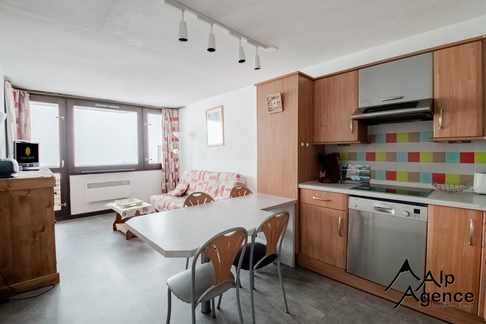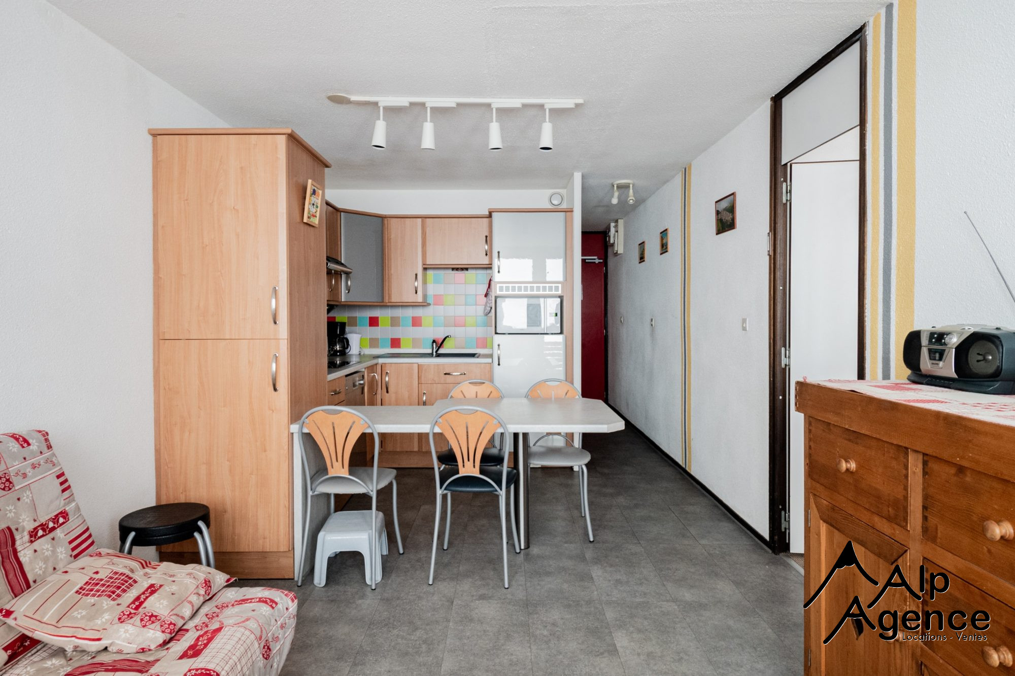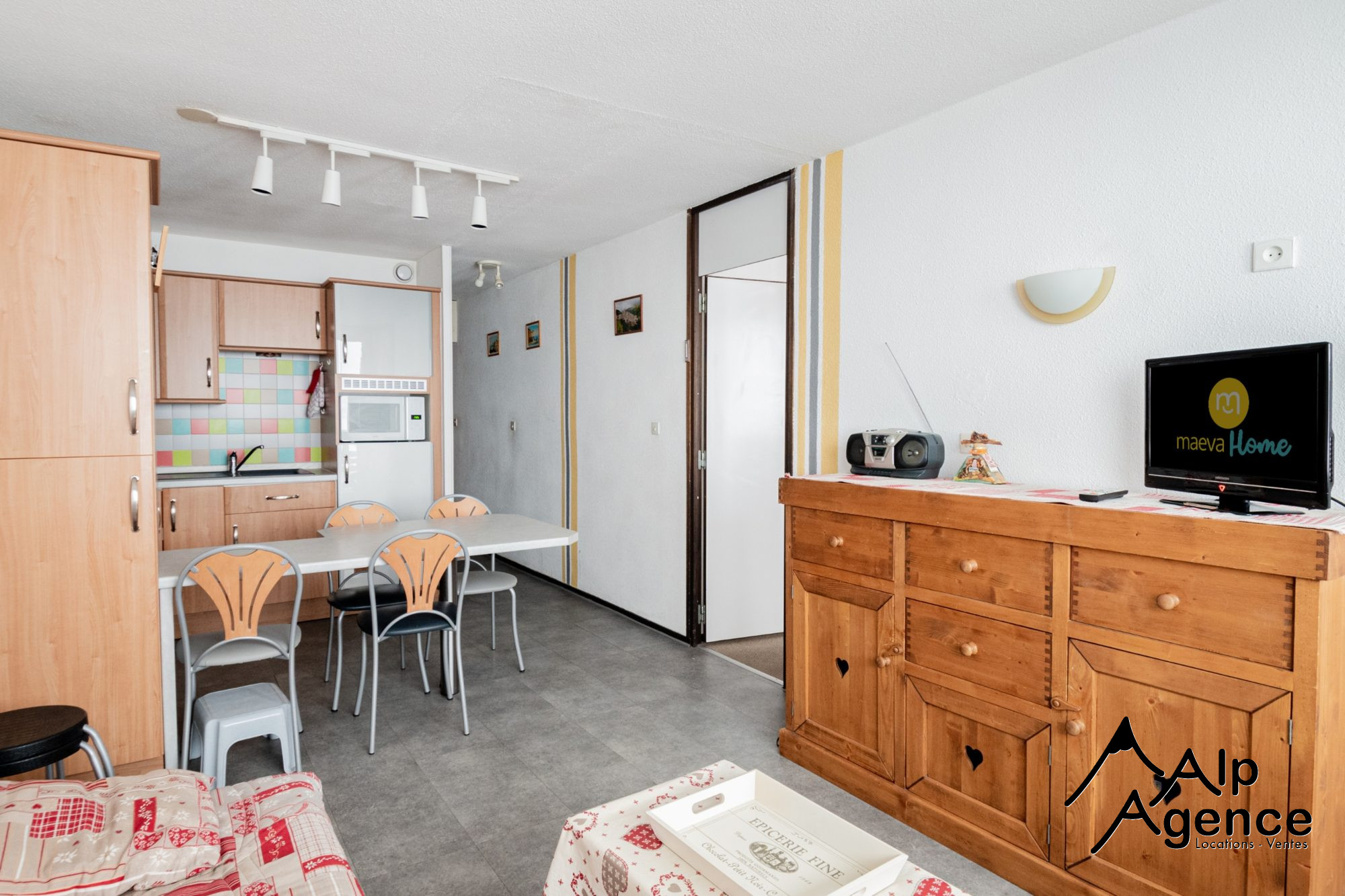 ...Comprenant une entrée, une pièce de vie lumineuse avec une cuisine américaine équipée, une...