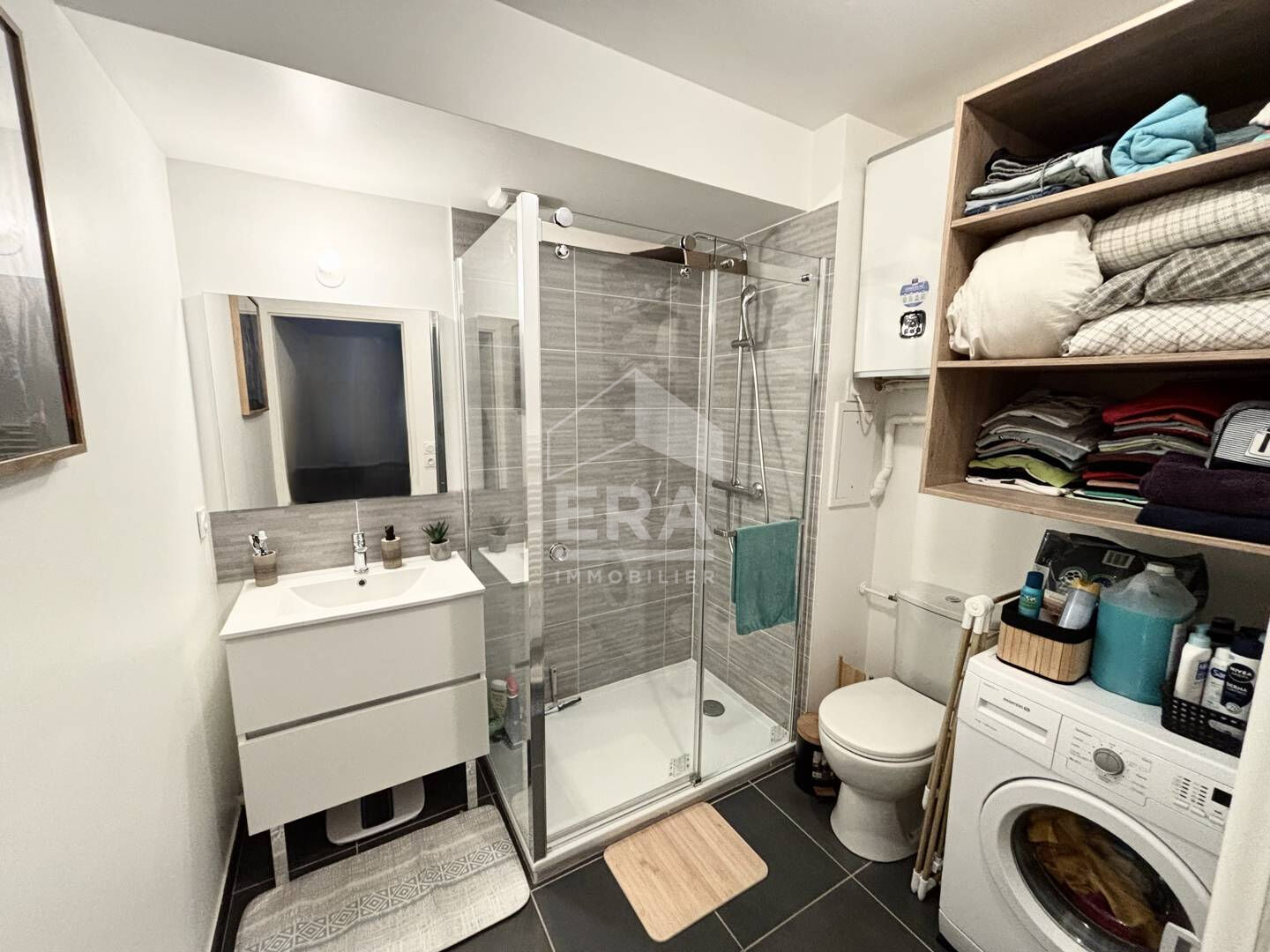 ...Vous profiterez d'une entrée avec placard, d'une pièce de vie lumineuse avec cuisine ouverte...
