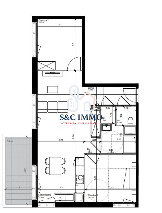 ...Construit en 1993, cet appartement allie charme et modernité, offrant un espace de vie...