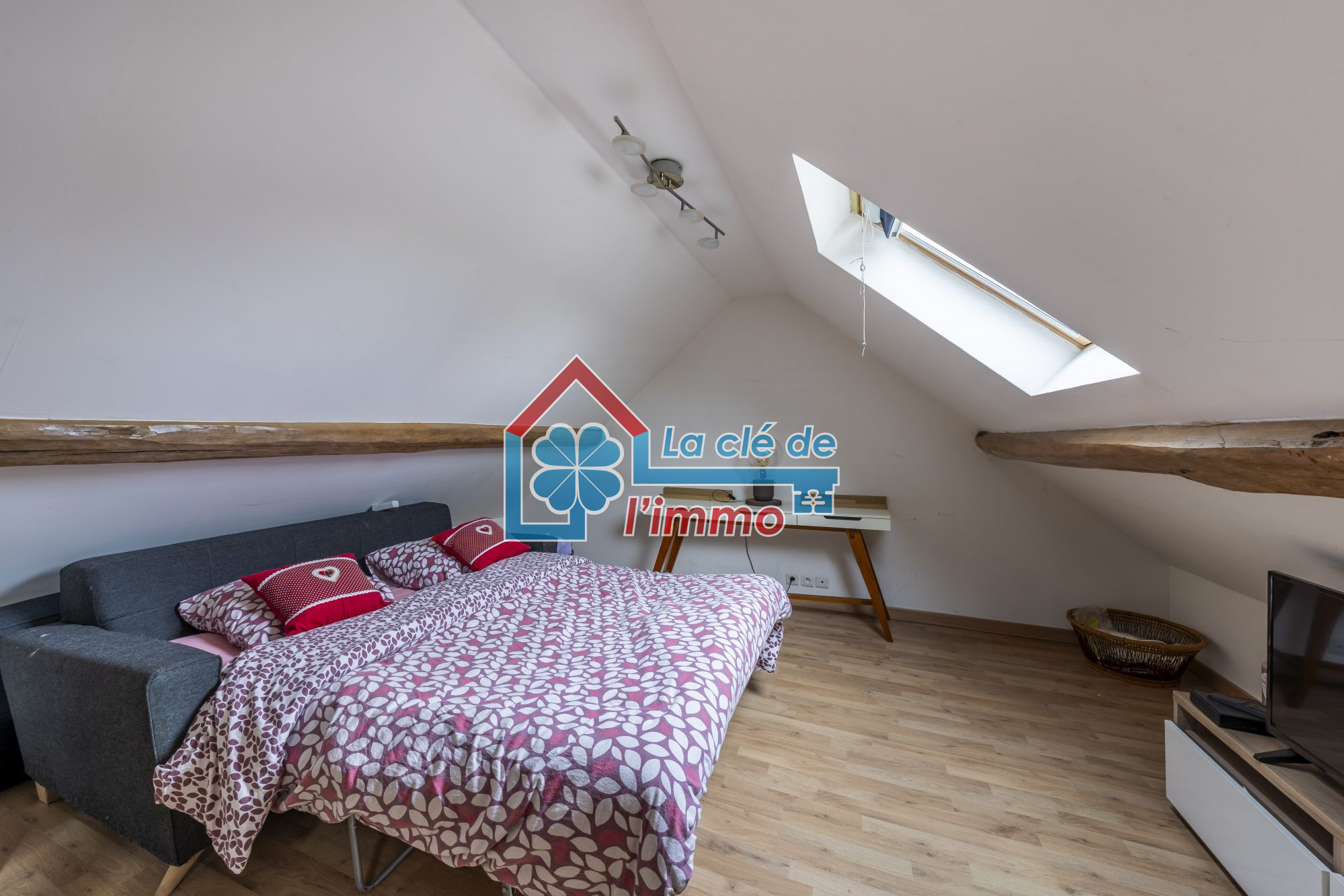 ... Le charme de l'ancien est mis en valeur par une charpente apparente dans tout le logement apportant...