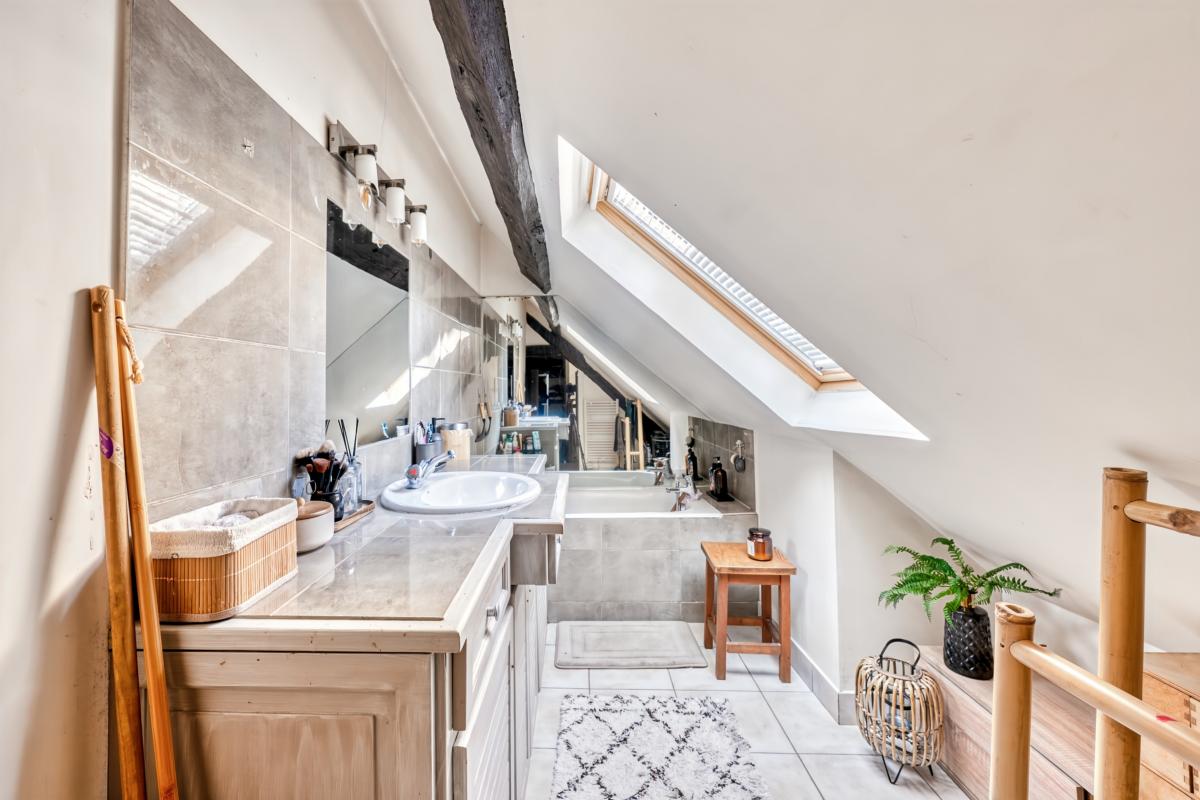... aux volumes atypiques et agréables, sous les toits, avec un séjour de 35 m² donnant sur une terrass...