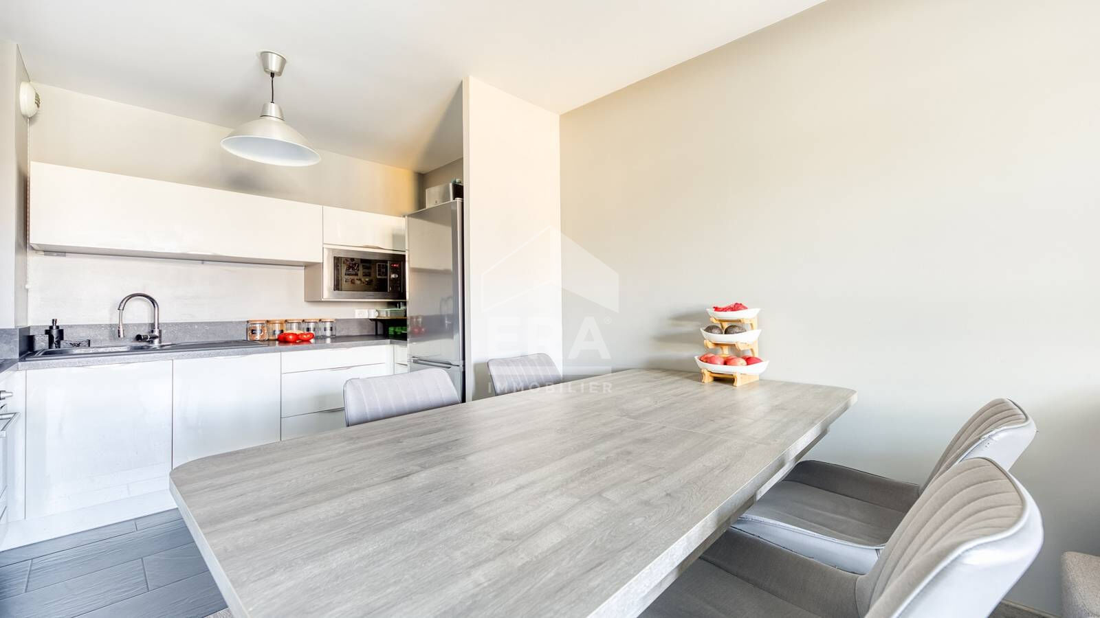 ...L'entrée s'ouvre sur une belle pièce de vie, baignée de lumière grâce à de grandes fenêtres de...