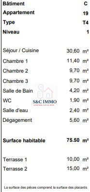 ...Ce logement se compose de :- 4 chambres- Une belle pièce de vie- Une cuisine aménagée et équipée-...