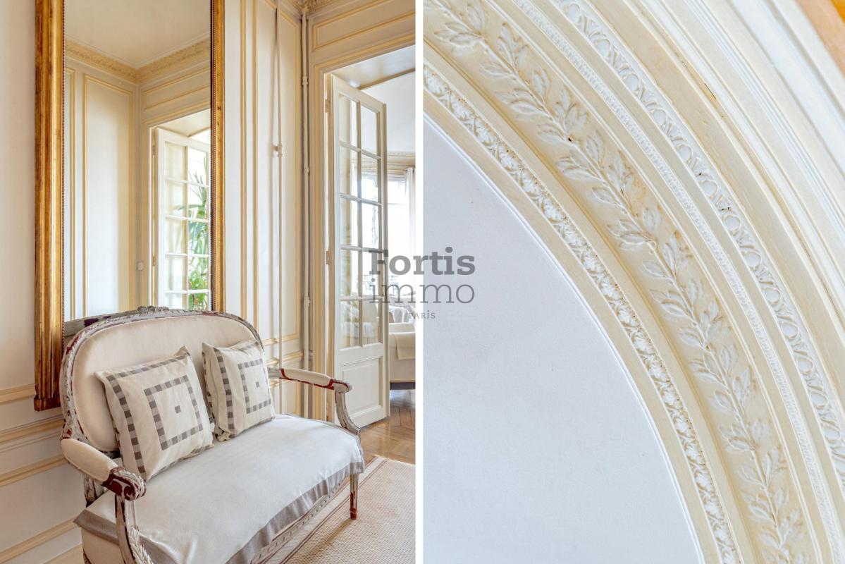 ... ascenseur, très haussmannien dans l'architecture, très beau parquet et moulures au plafond, cheminé...