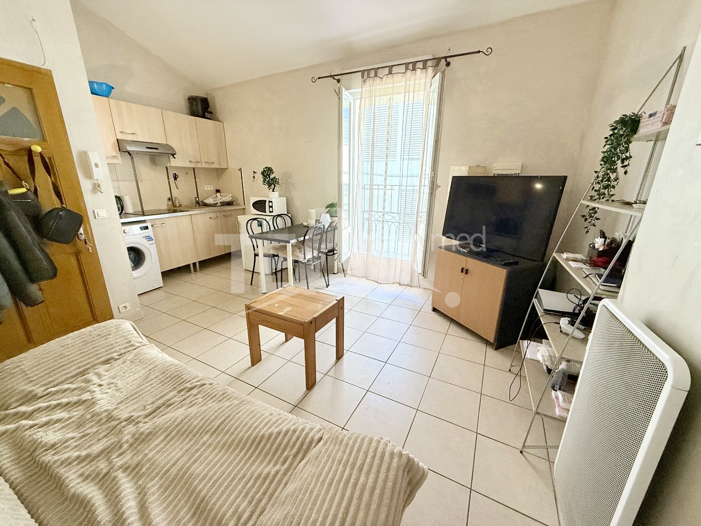 ...Le logement est composé d'une entrée, d'une cuisine ouverte sur le séjour et d'un balcon...