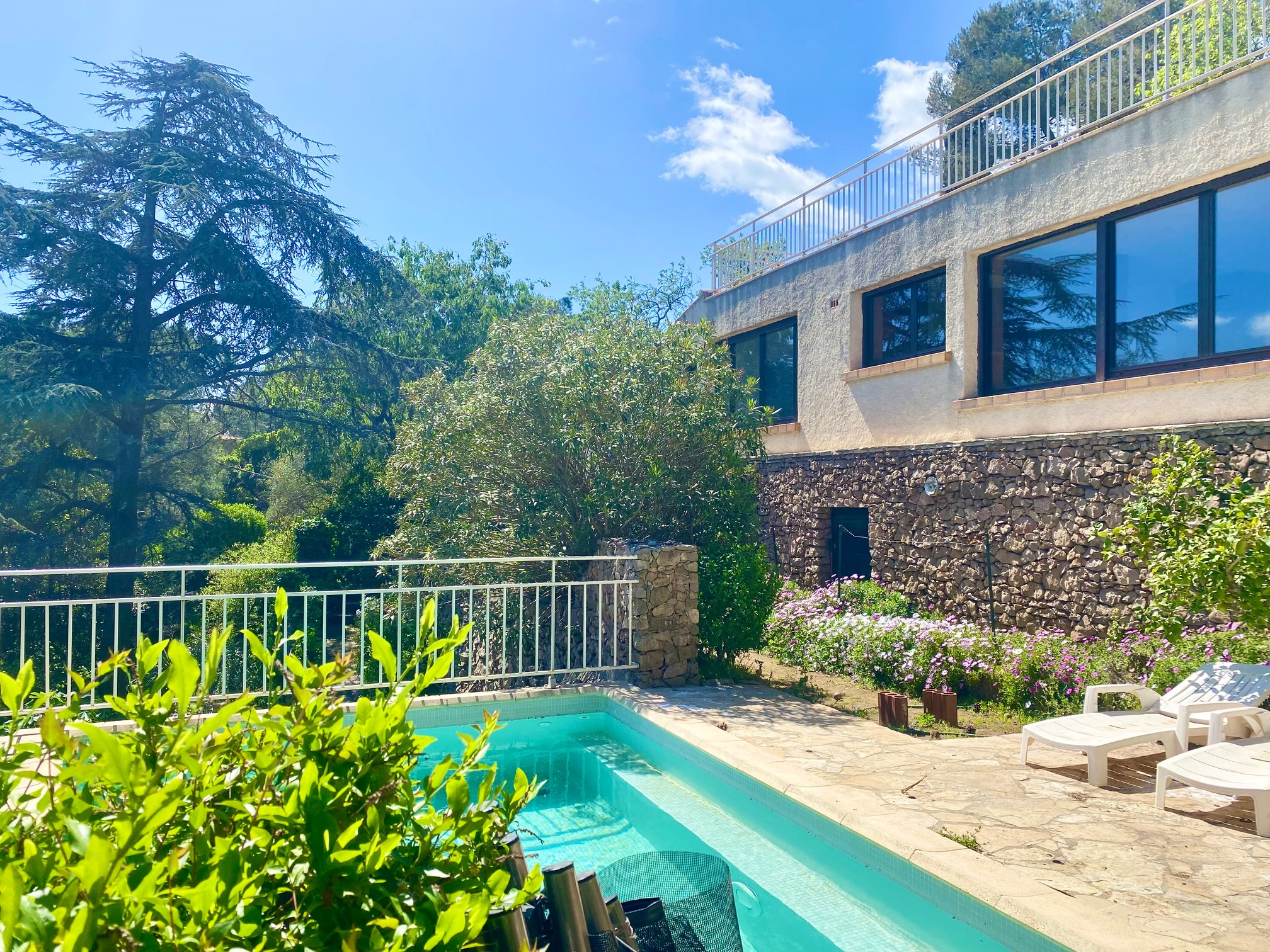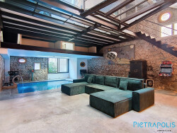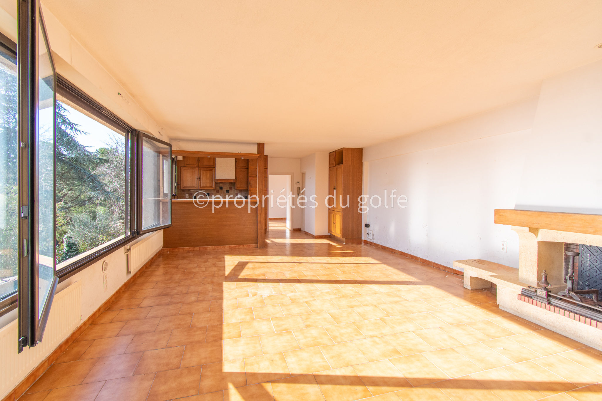 ...Il se compose d'un séjour/salon complètement vitré avec cheminée, une cuisine ouverte, une...