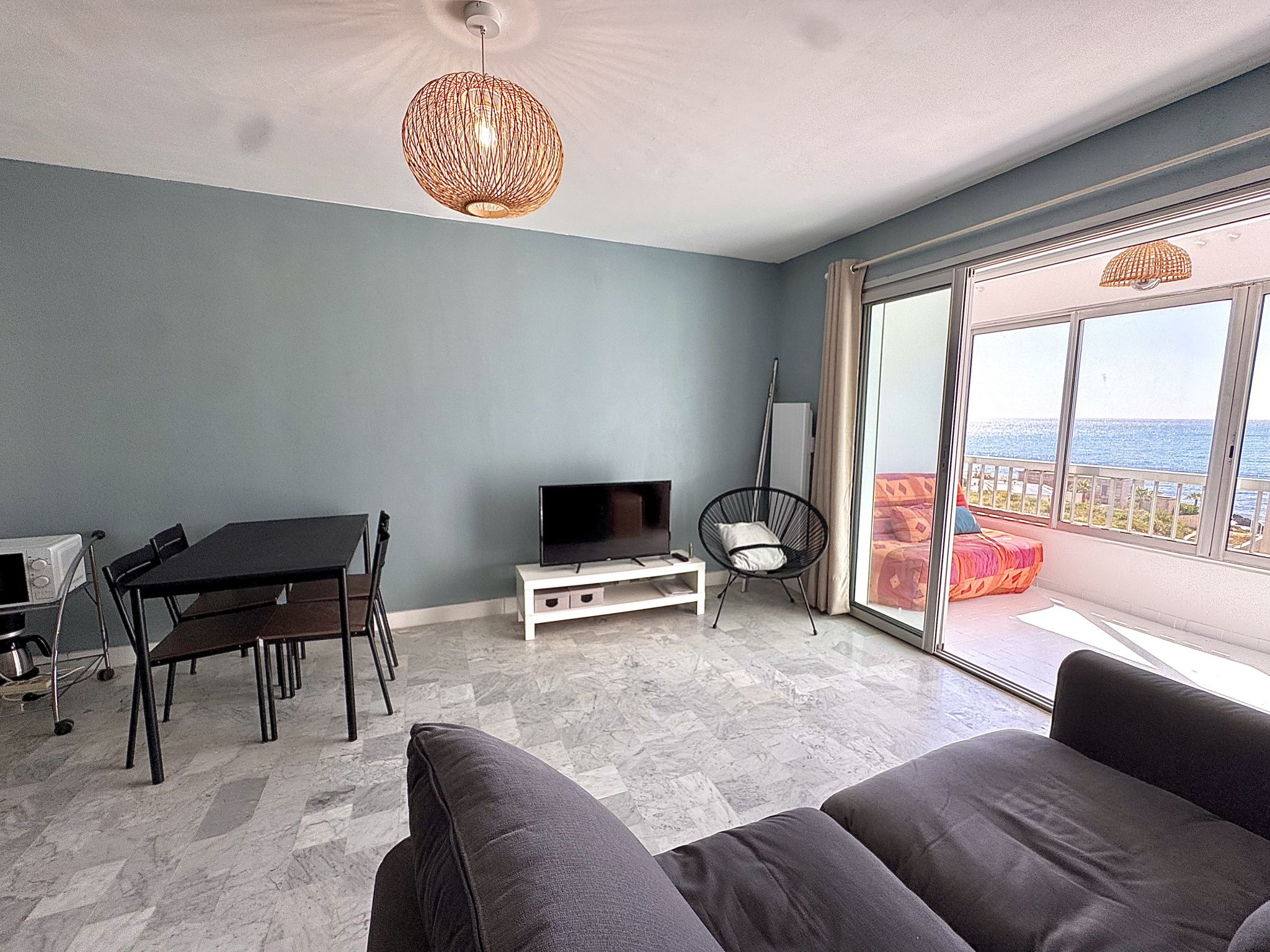 ... d'un séjour avec cuisine équipée d' une véranda offrant la vue mer , d'une chambre , d'une salle...