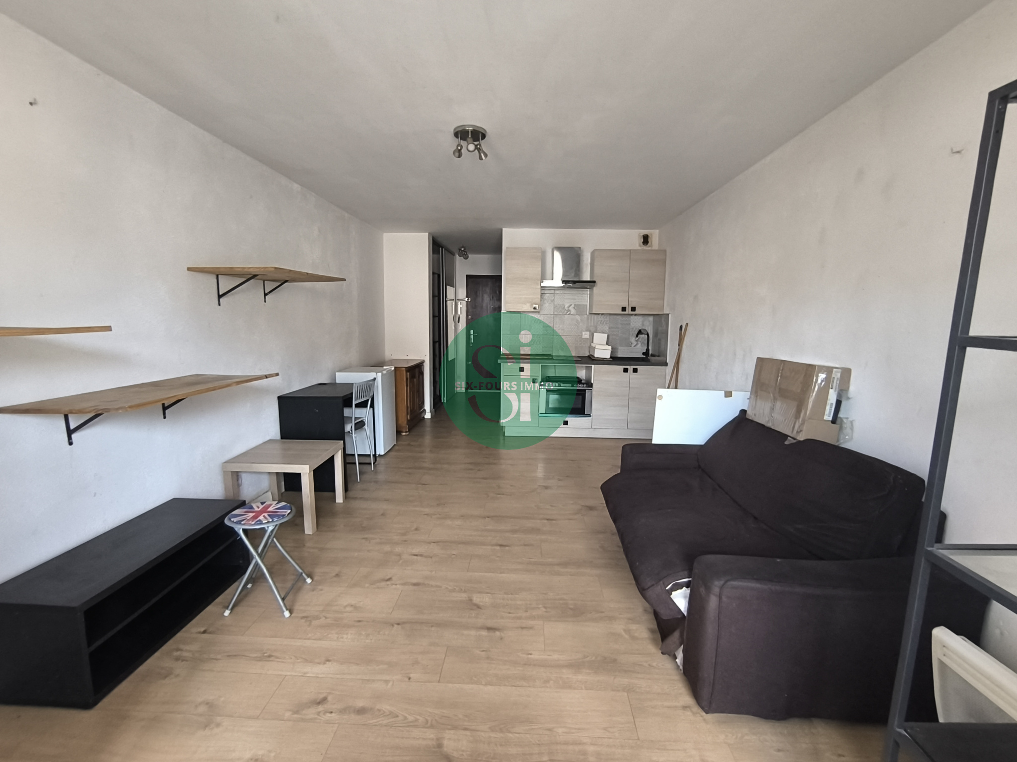 -Une pièce de vie avec cuisine ouverte et espace salon/coin nuit