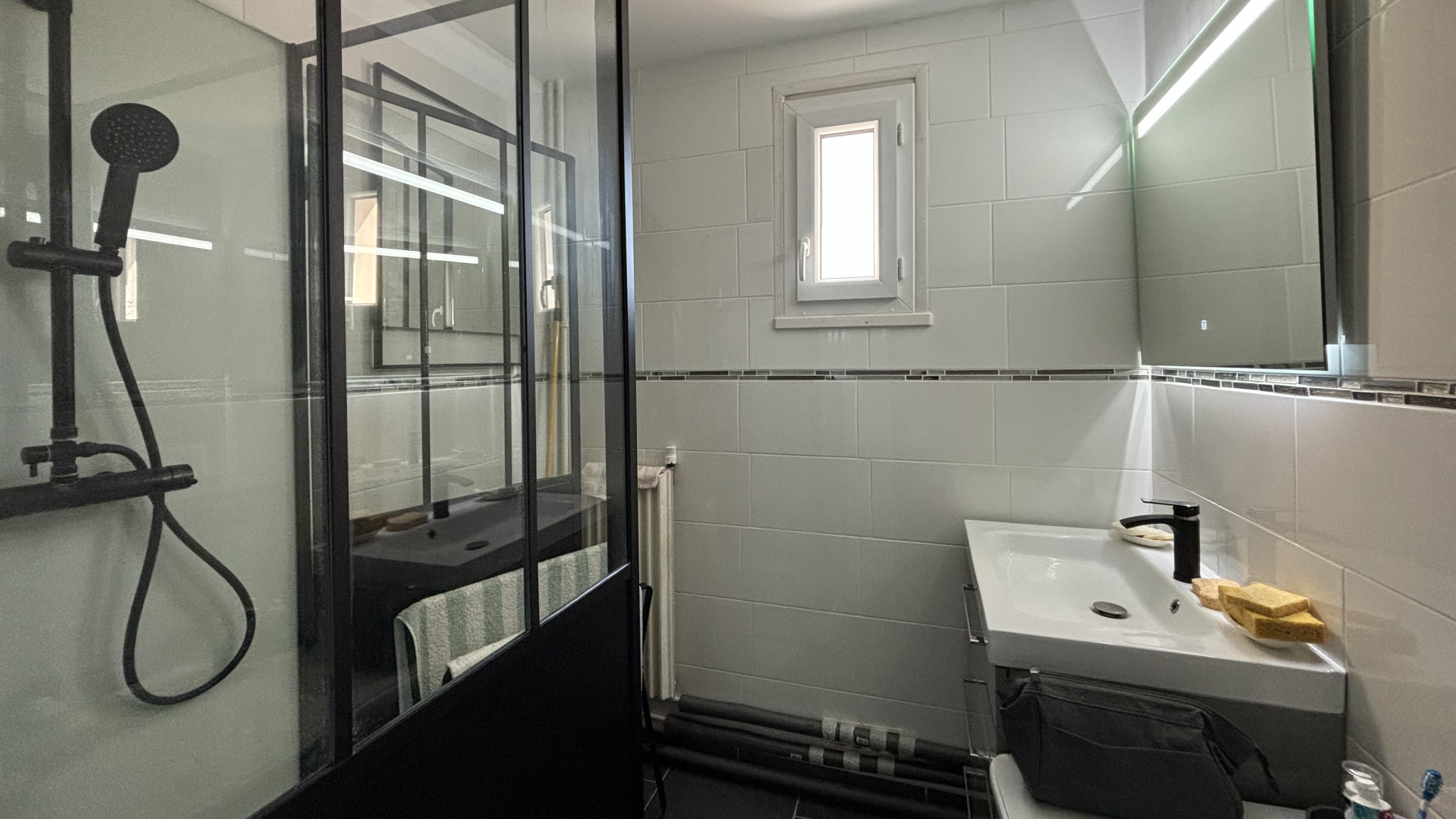 ...Terrasse couverte, jardinet et place de parking...