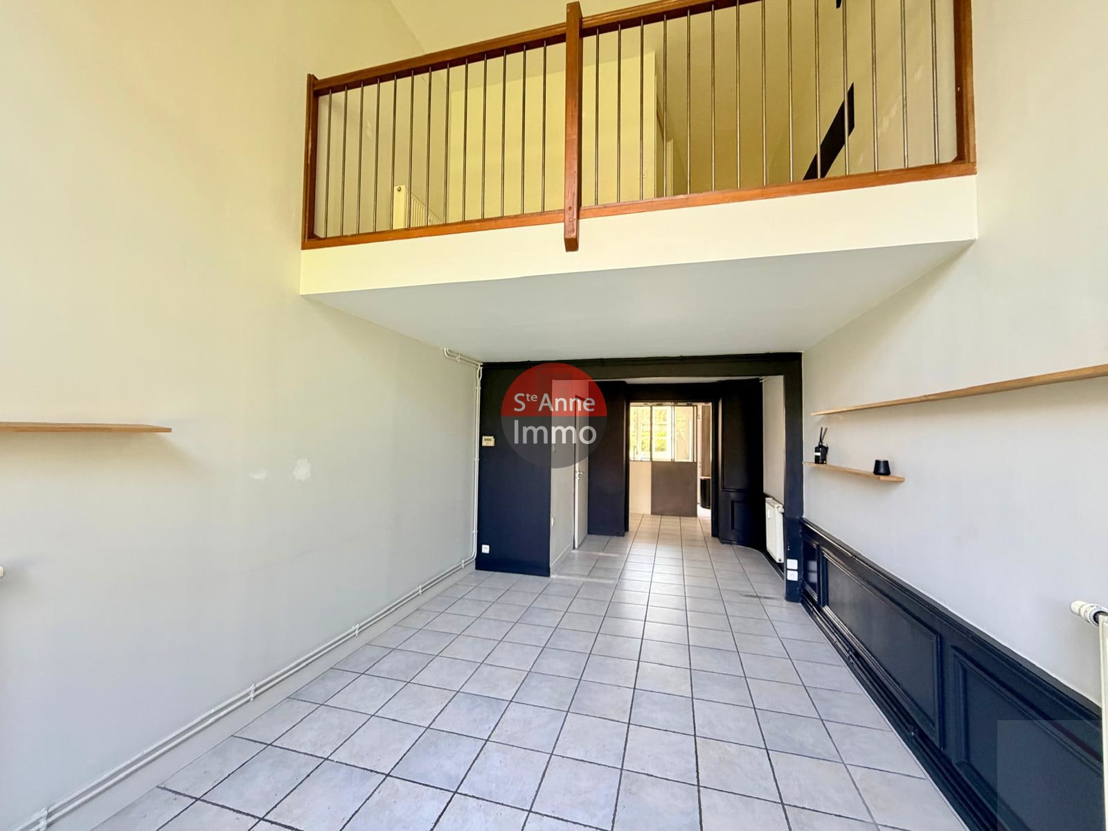 ...A l'étage : une mezzanine faisant office de bureau, une salle de bain avec baignoire ainsi qu'un...