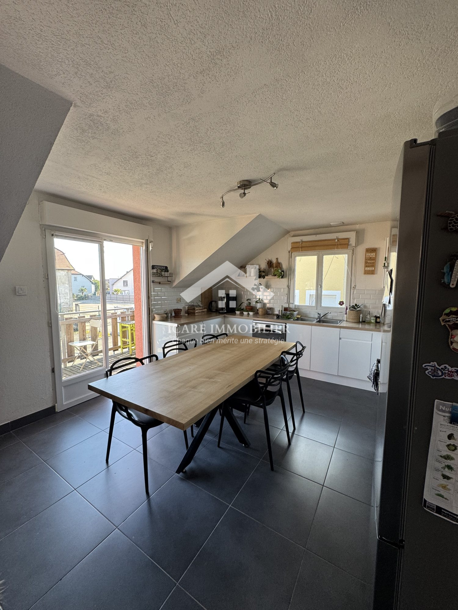 ...Il s'ouvre sur une entrée servant l'espace de vie donnant sur la cuisine...