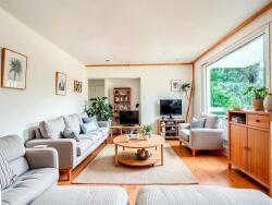 ... Un séjour lumineux offrant une belle vue sur les espaces verts, une cuisine aménagée moderne et fon...