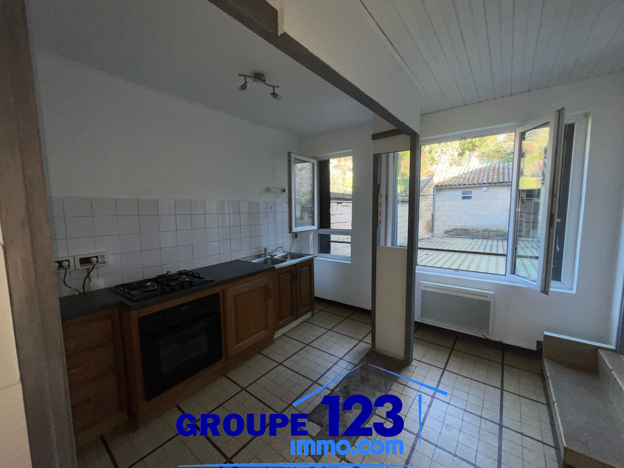 ...Au rez-de-chaussée, vous trouverez une entrée, un WC indépendant, une cuisine partiellement...