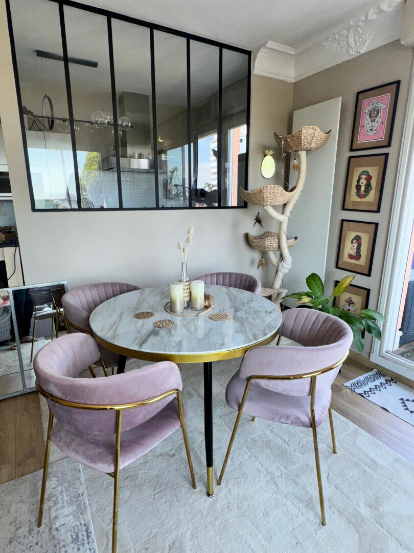 ... pièce de vie avec cuisine équipée et d'une terrasse en tropézienne de 9 m² orienté ouest.